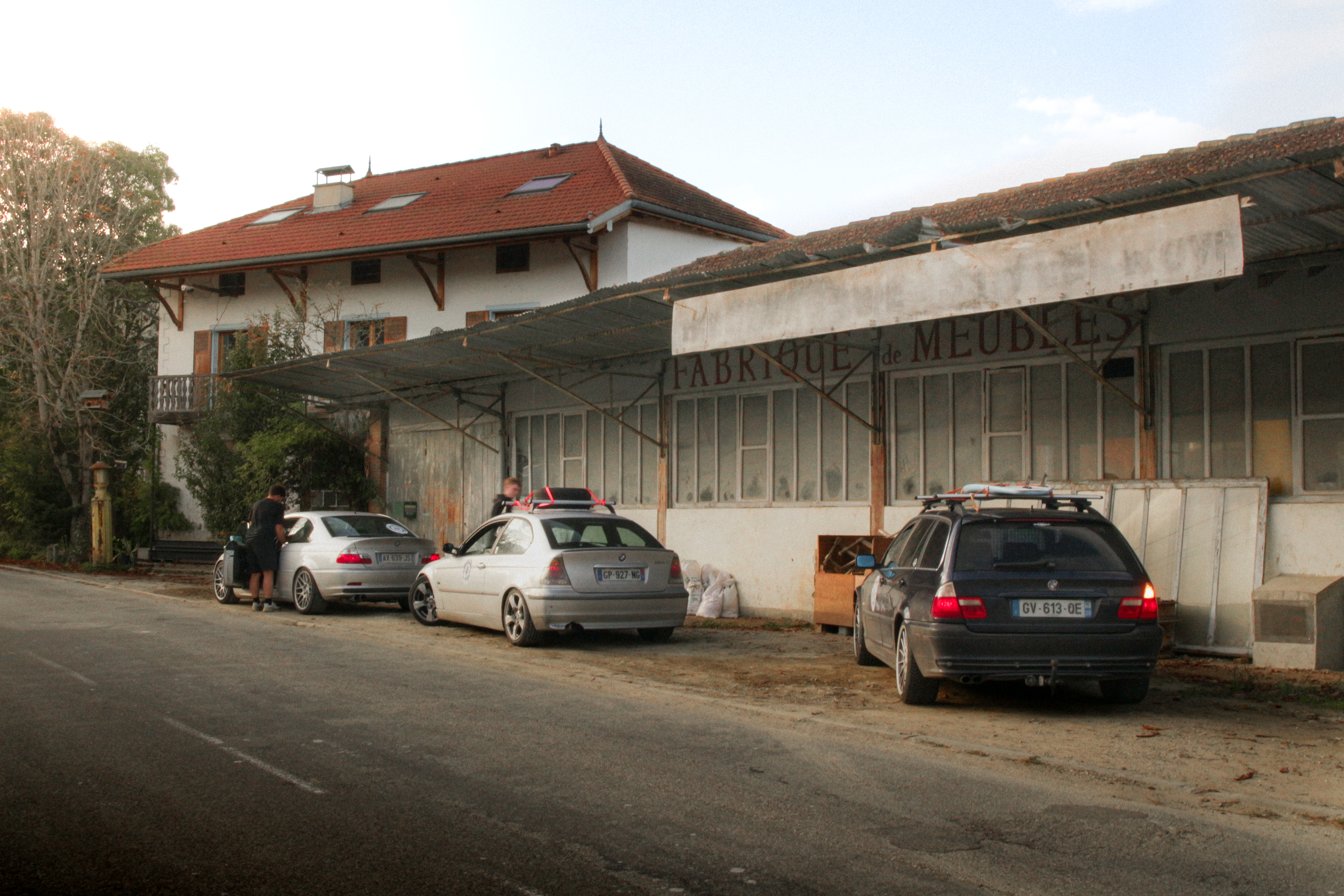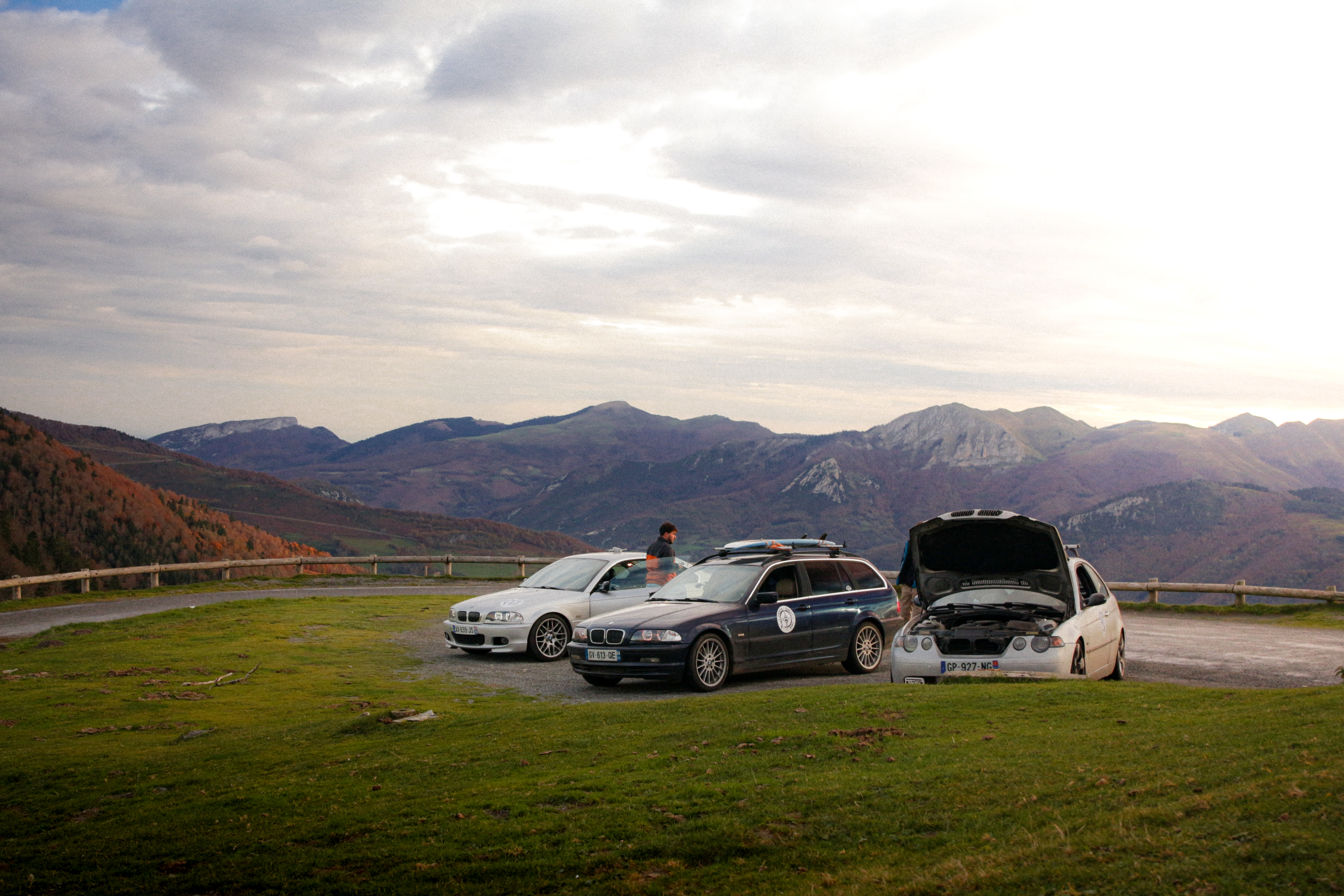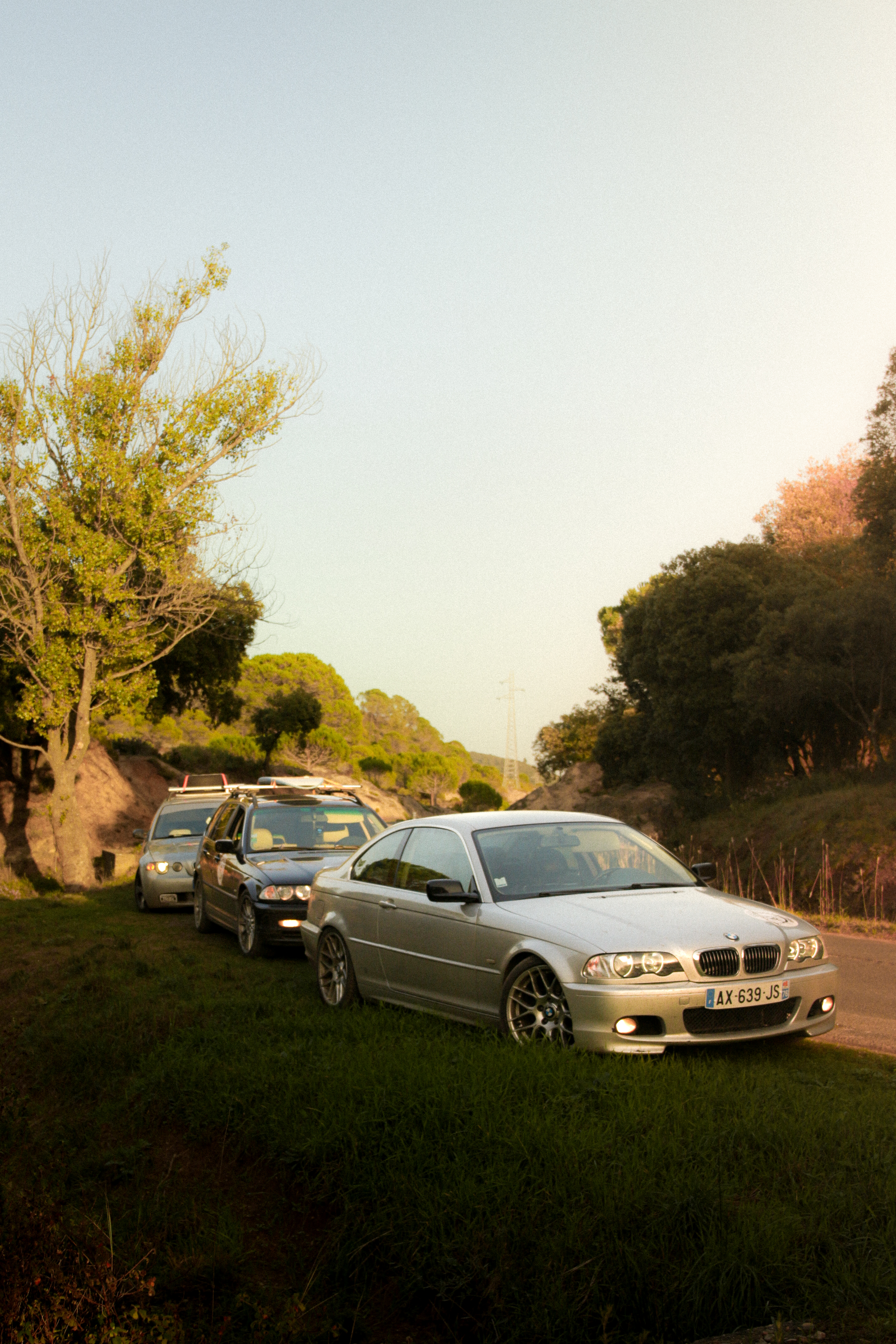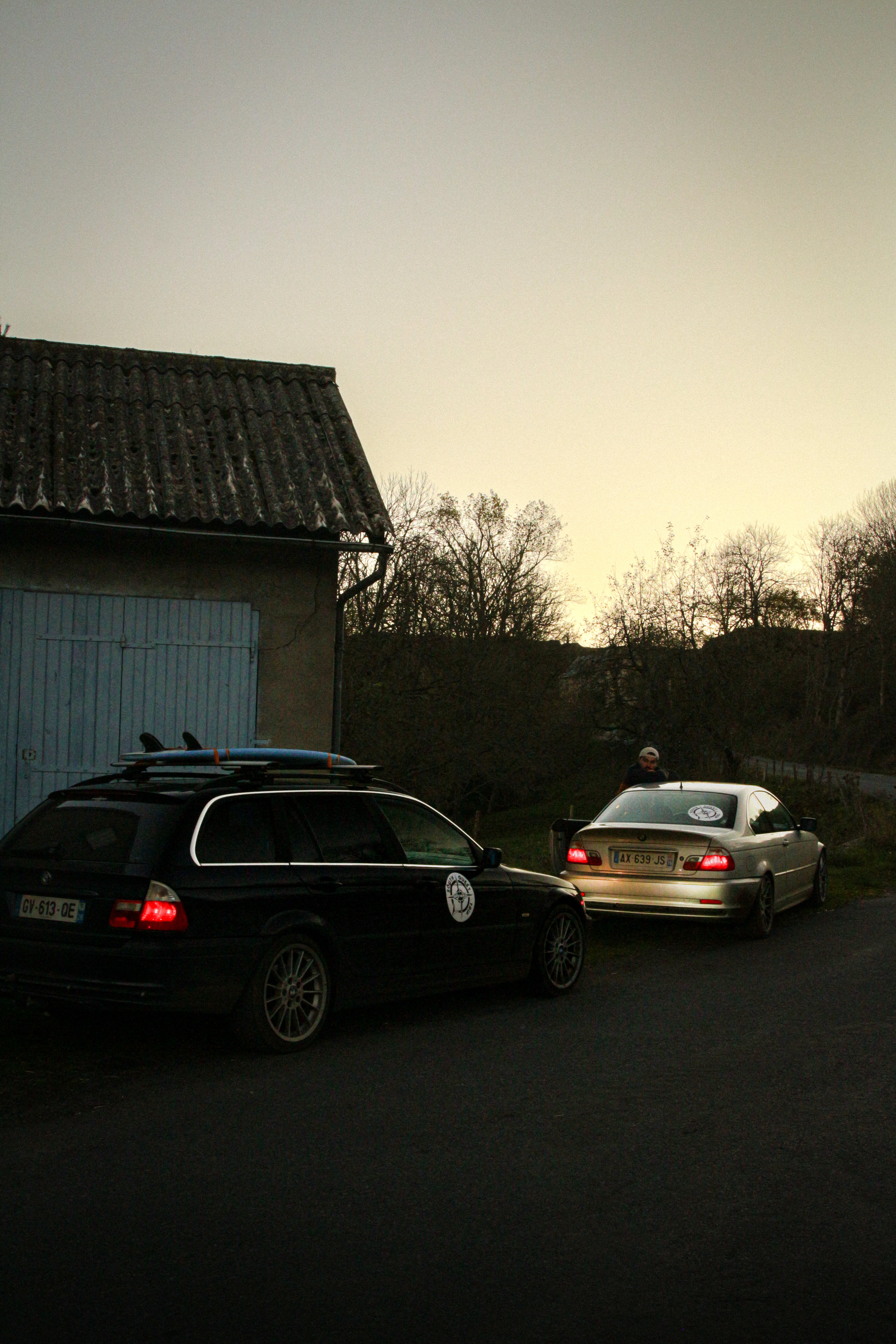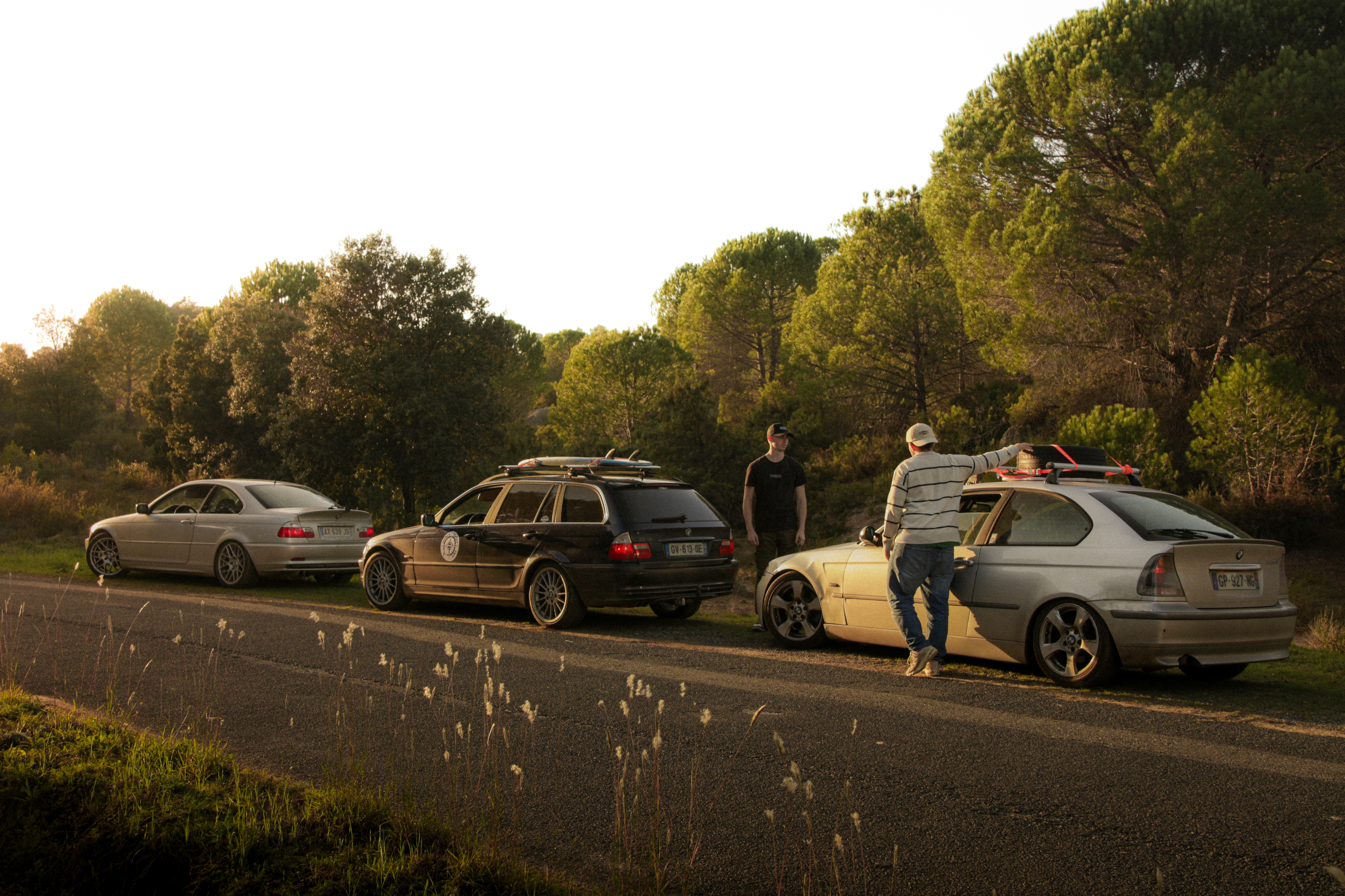 As we cross the small towns of Auvergne, the rumbling exhaust notes of the 323ci, the 325ti’s welded diff scraping the ground, and my surfboard adorning the roof of the 328i Touring break all the necks. It’s all eyes on us. Kids drop their lollipops while pointing at us, grandmothers on terraces wave at us, and hunters stare at us, confused, from the heights of their 4x4s.