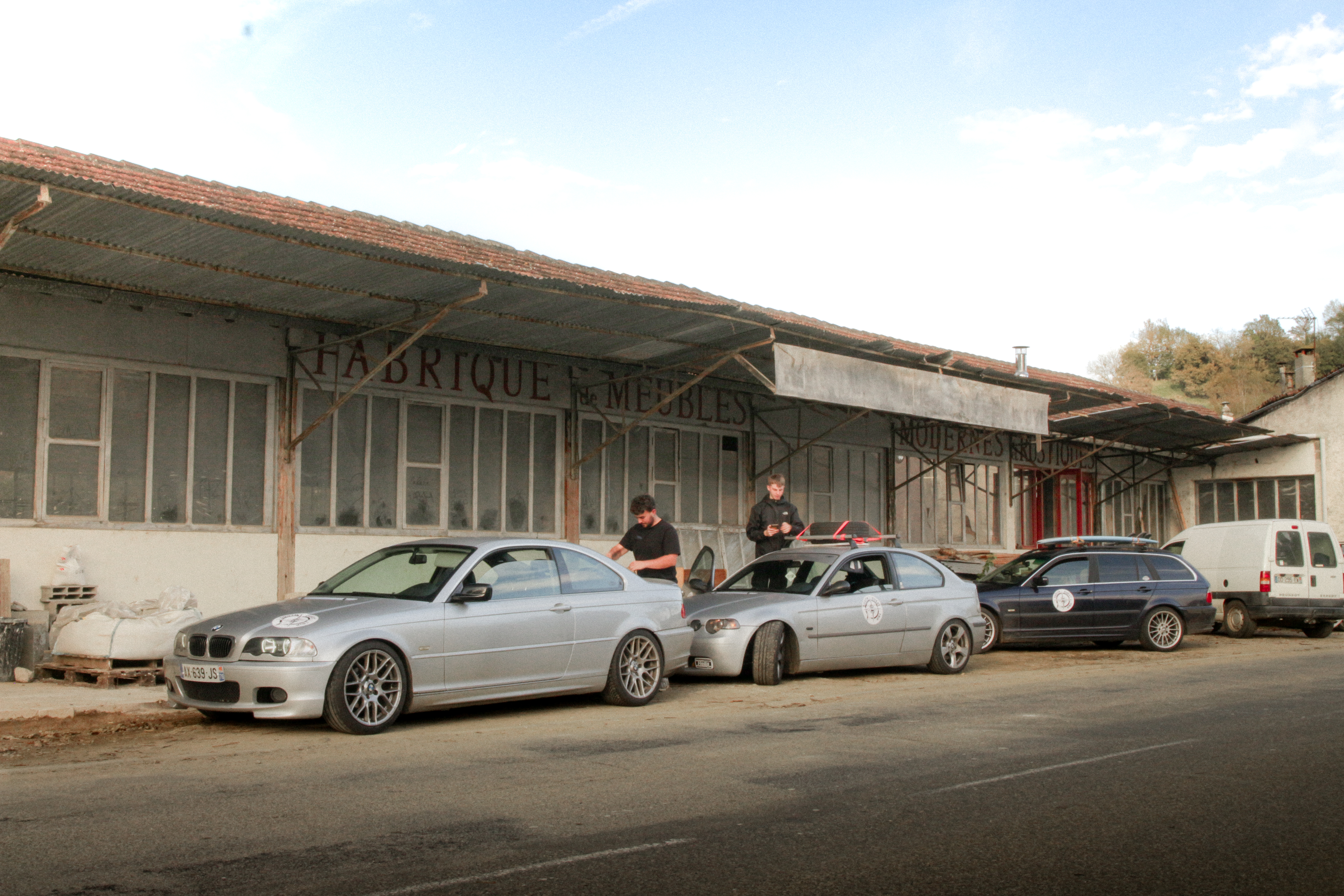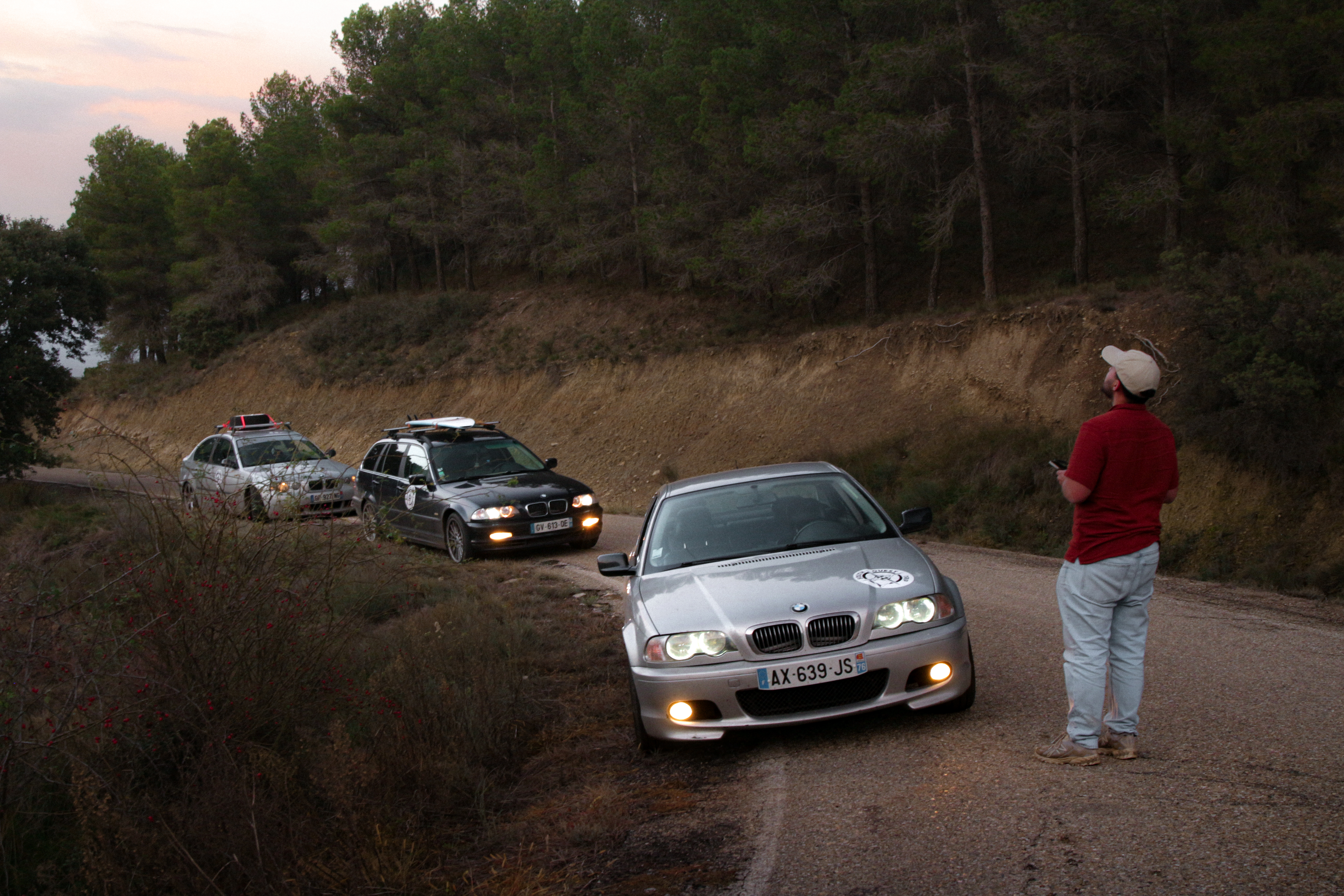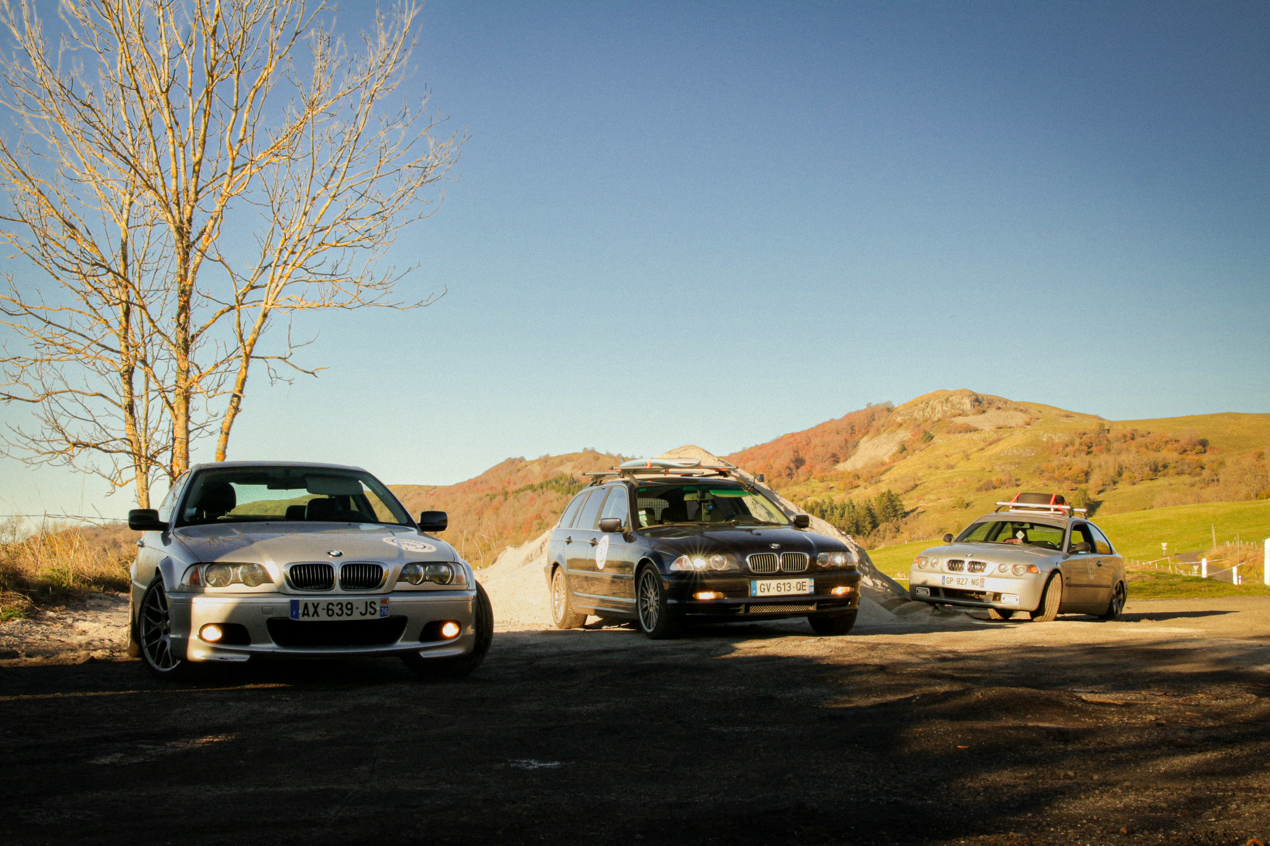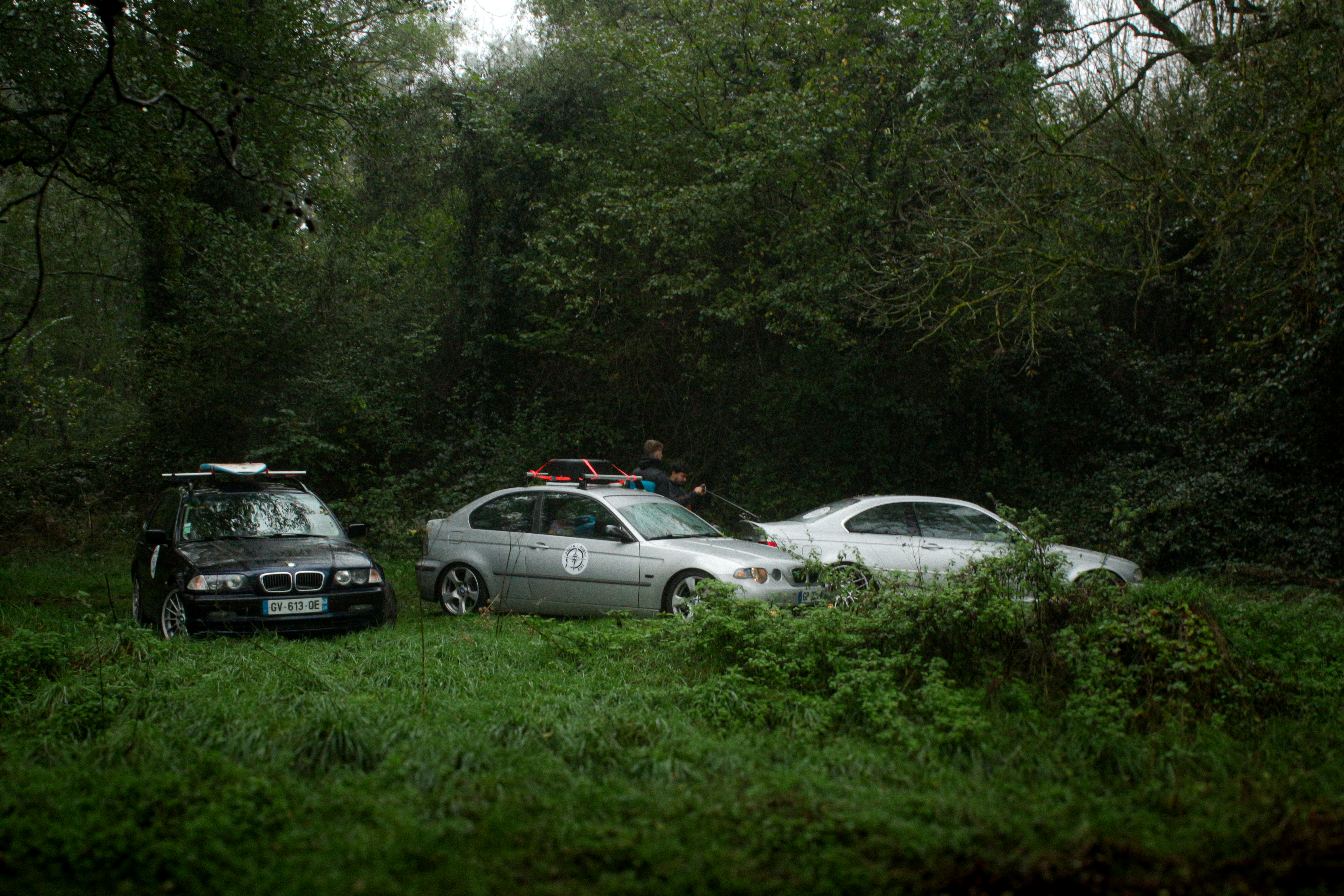 As we cross the small towns of Auvergne, the rumbling exhaust notes of the 323ci, the 325ti’s welded diff scraping the ground, and my surfboard adorning the roof of the 328i Touring break all the necks. It’s all eyes on us. Kids drop their lollipops while pointing at us, grandmothers on terraces wave at us, and hunters stare at us, confused, from the heights of their 4x4s.