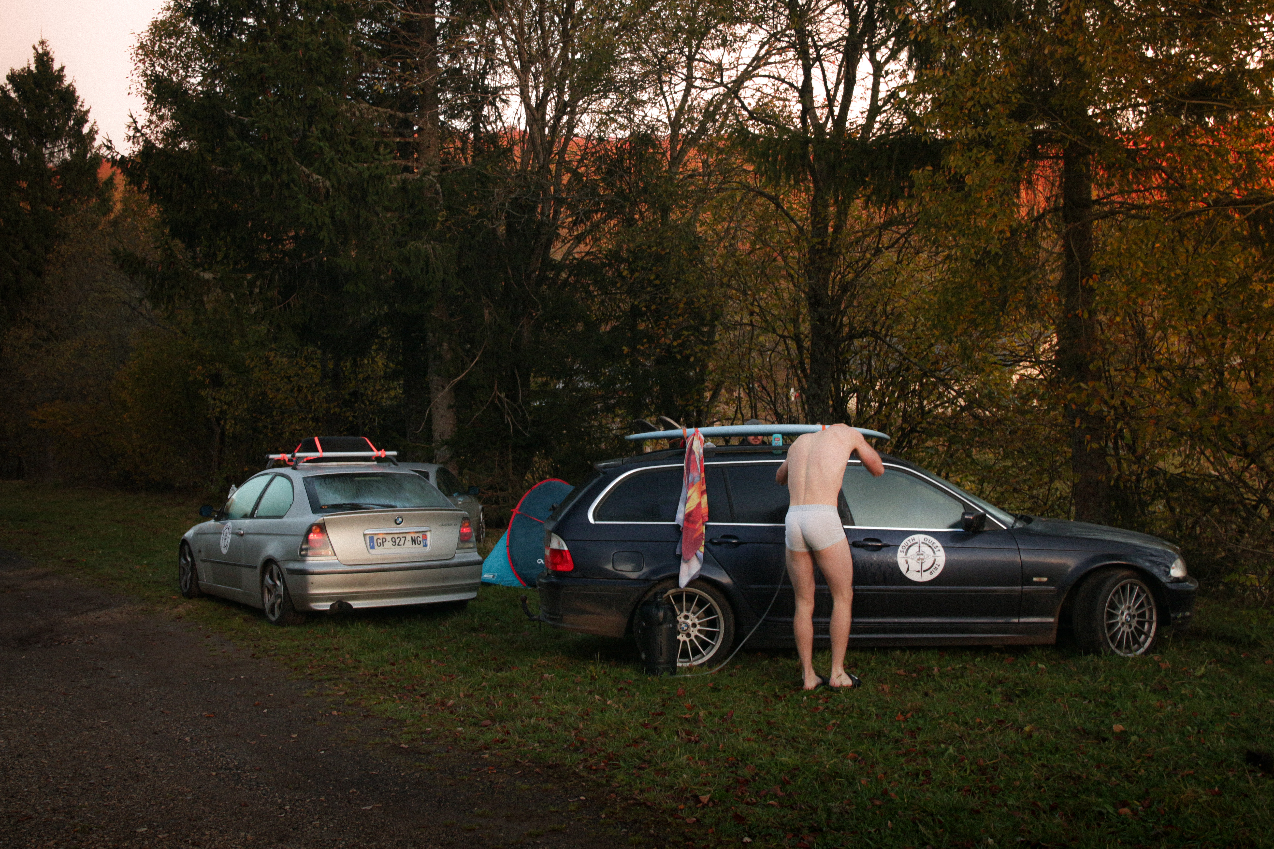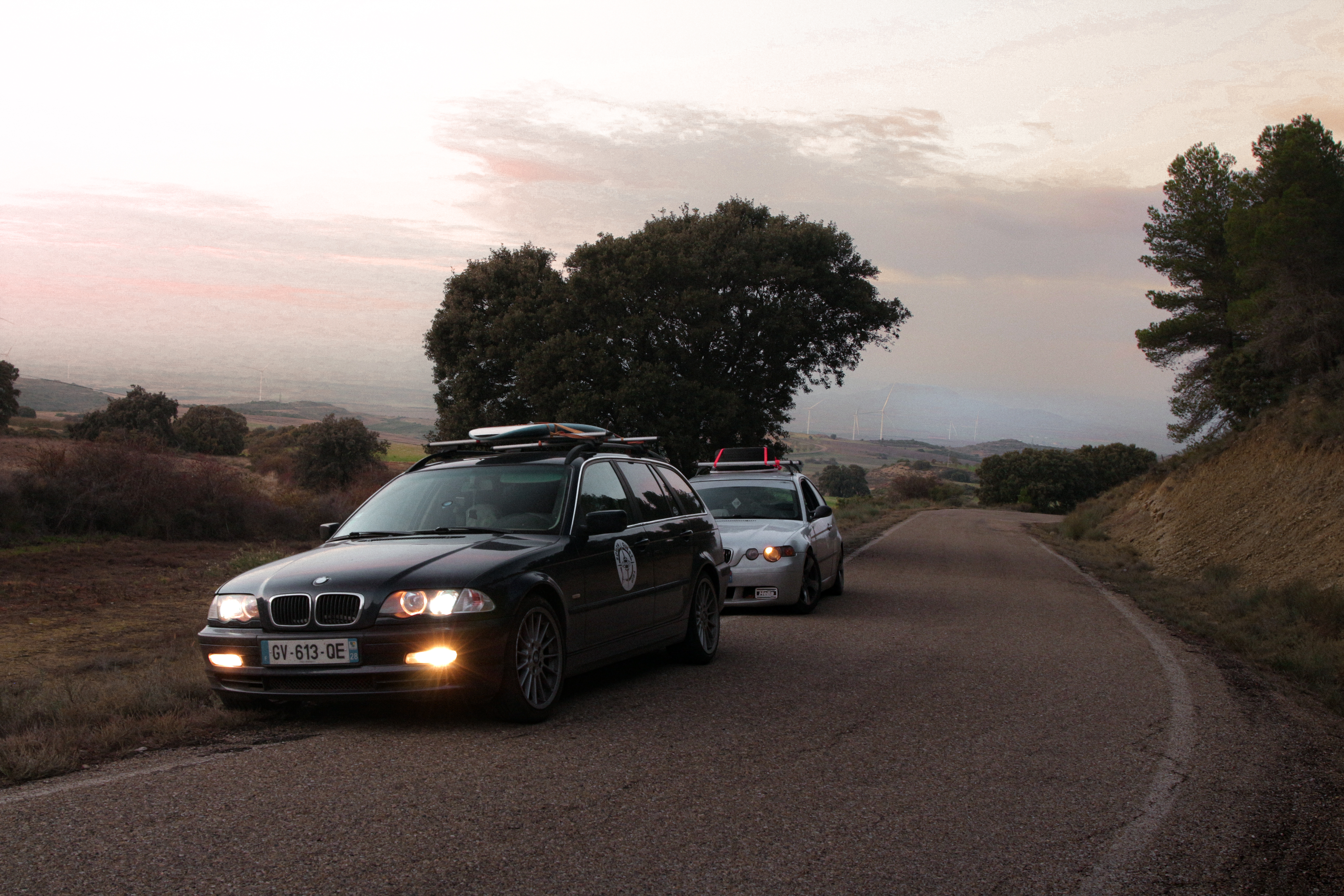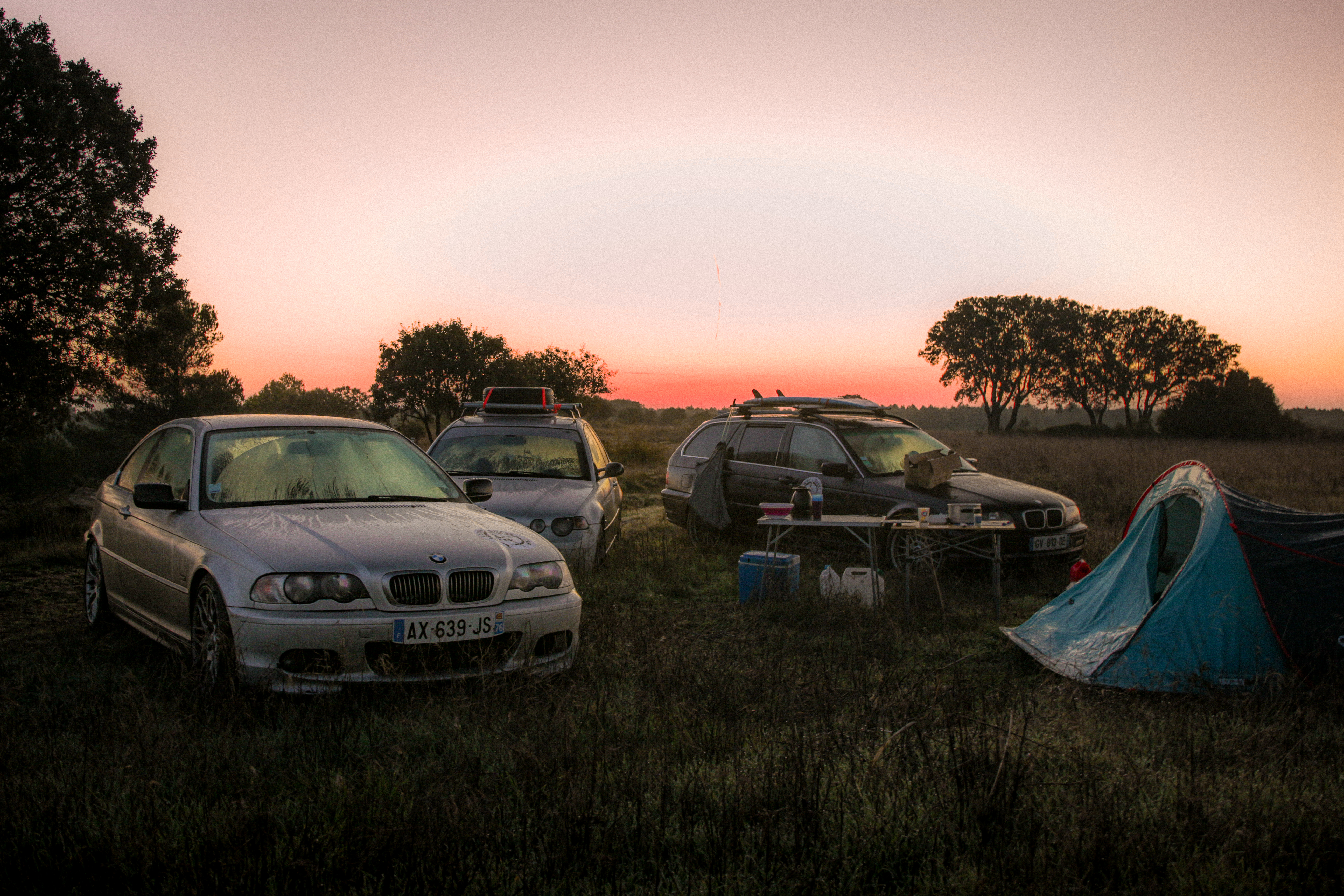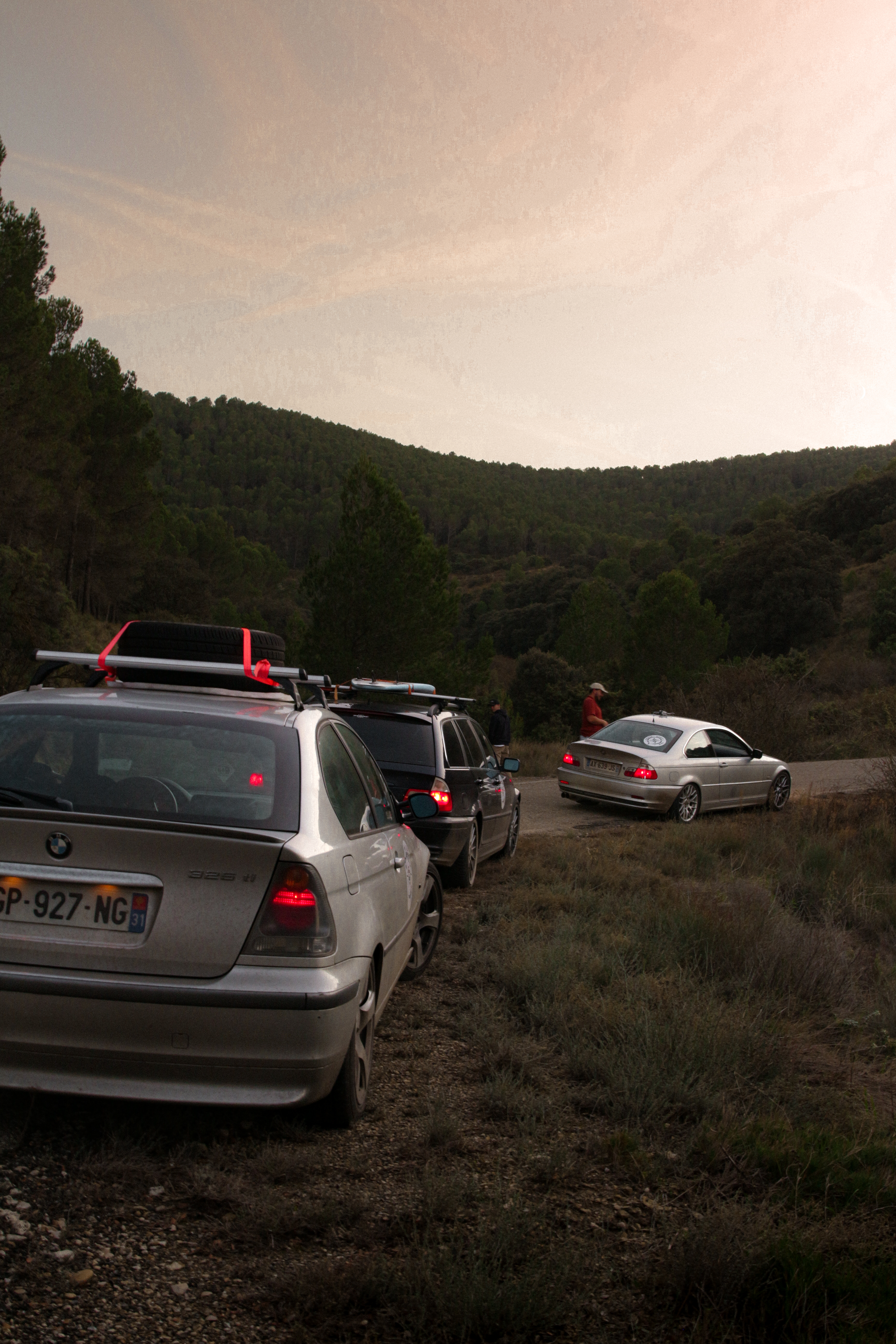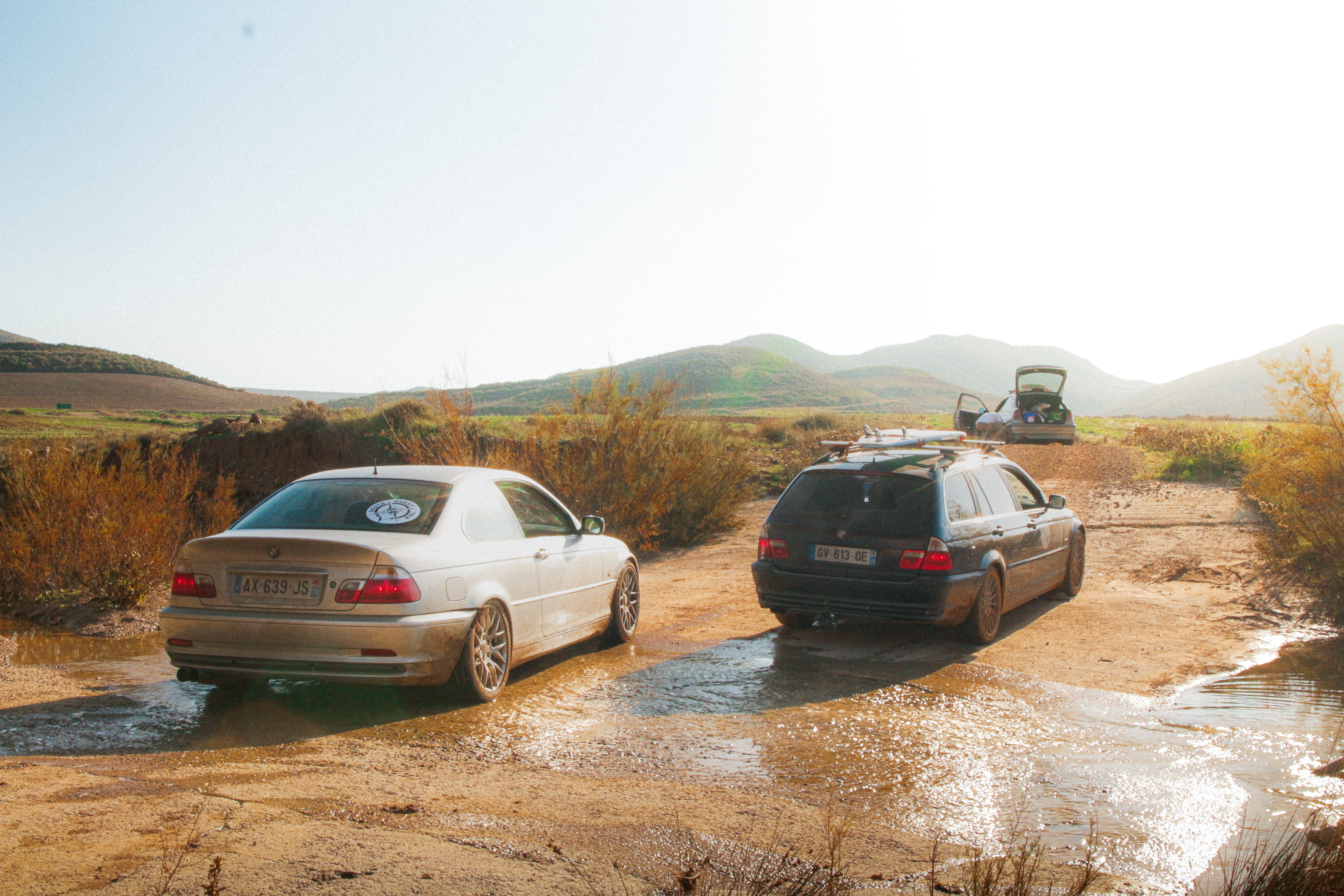 As we cross the small towns of Auvergne, the rumbling exhaust notes of the 323ci, the 325ti’s welded diff scraping the ground, and my surfboard adorning the roof of the 328i Touring break all the necks. It’s all eyes on us. Kids drop their lollipops while pointing at us, grandmothers on terraces wave at us, and hunters stare at us, confused, from the heights of their 4x4s.