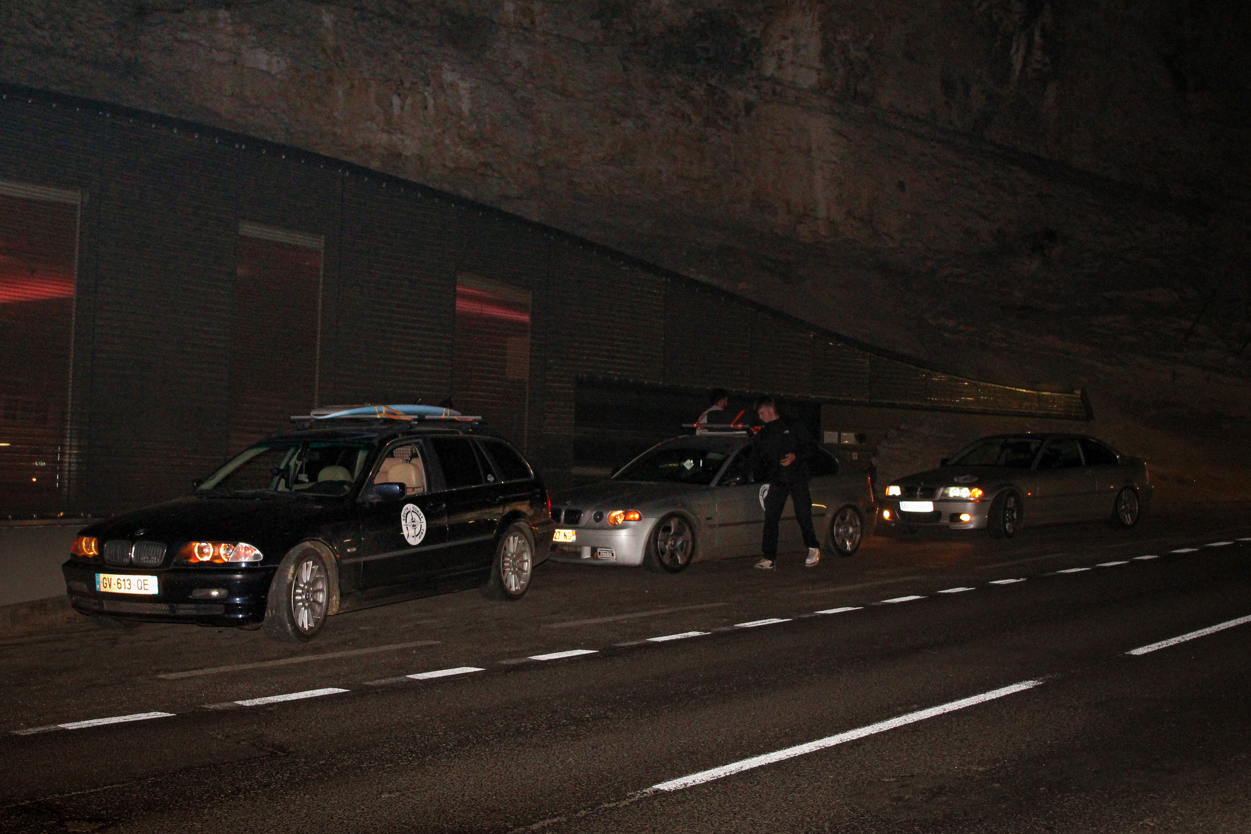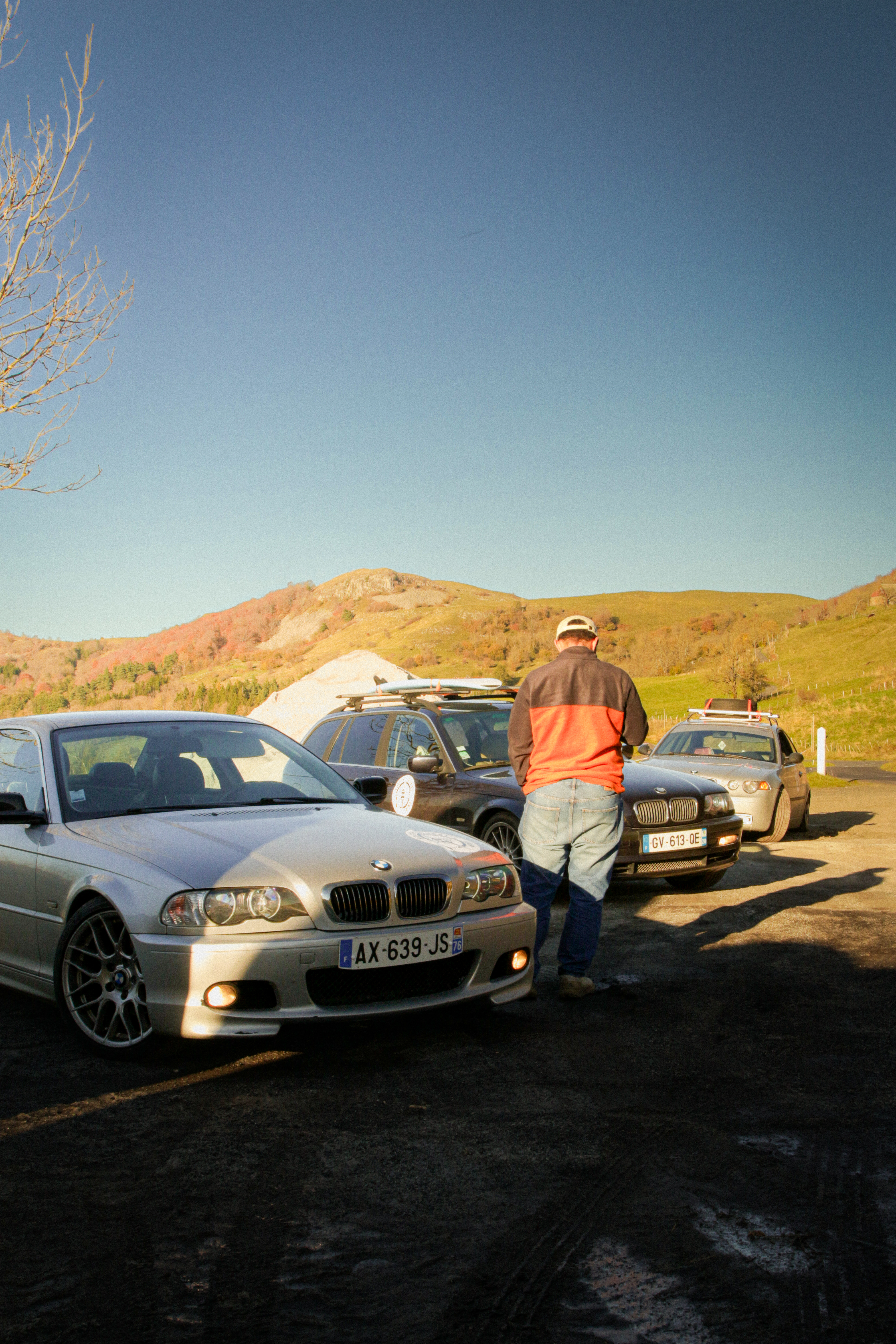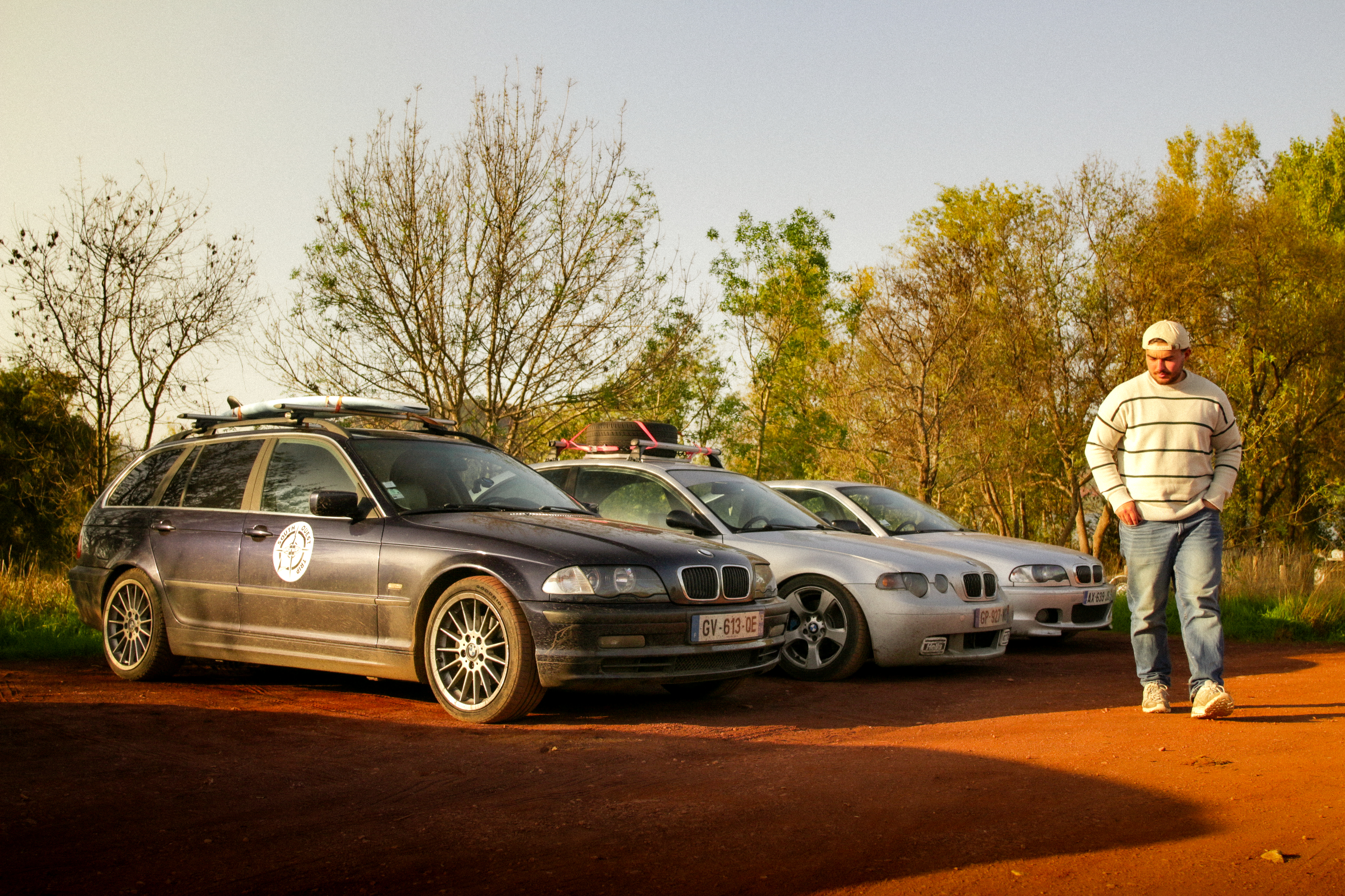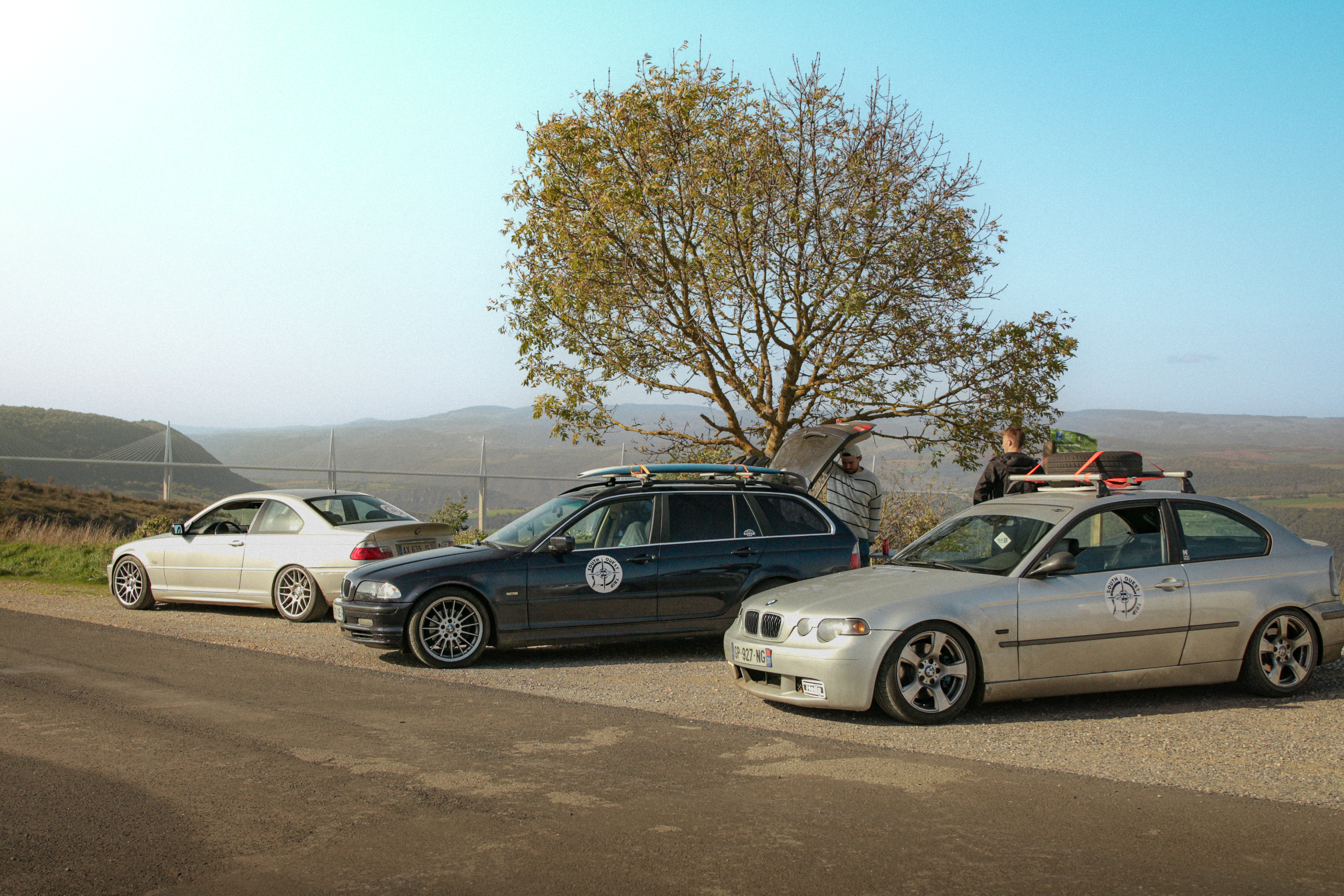 As we cross the small towns of Auvergne, the rumbling exhaust notes of the 323ci, the 325ti’s welded diff scraping the ground, and my surfboard adorning the roof of the 328i Touring break all the necks. It’s all eyes on us. Kids drop their lollipops while pointing at us, grandmothers on terraces wave at us, and hunters stare at us, confused, from the heights of their 4x4s.
