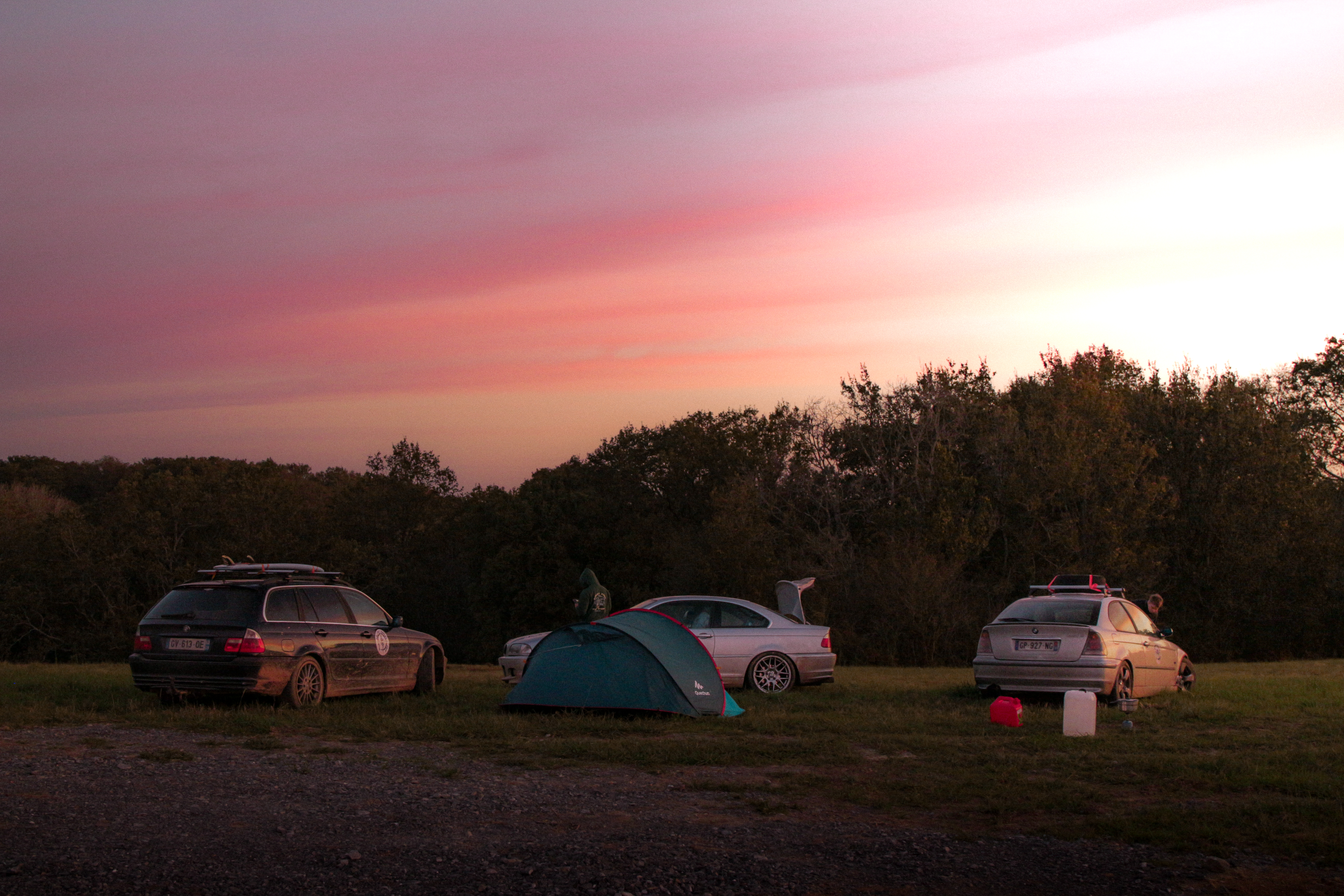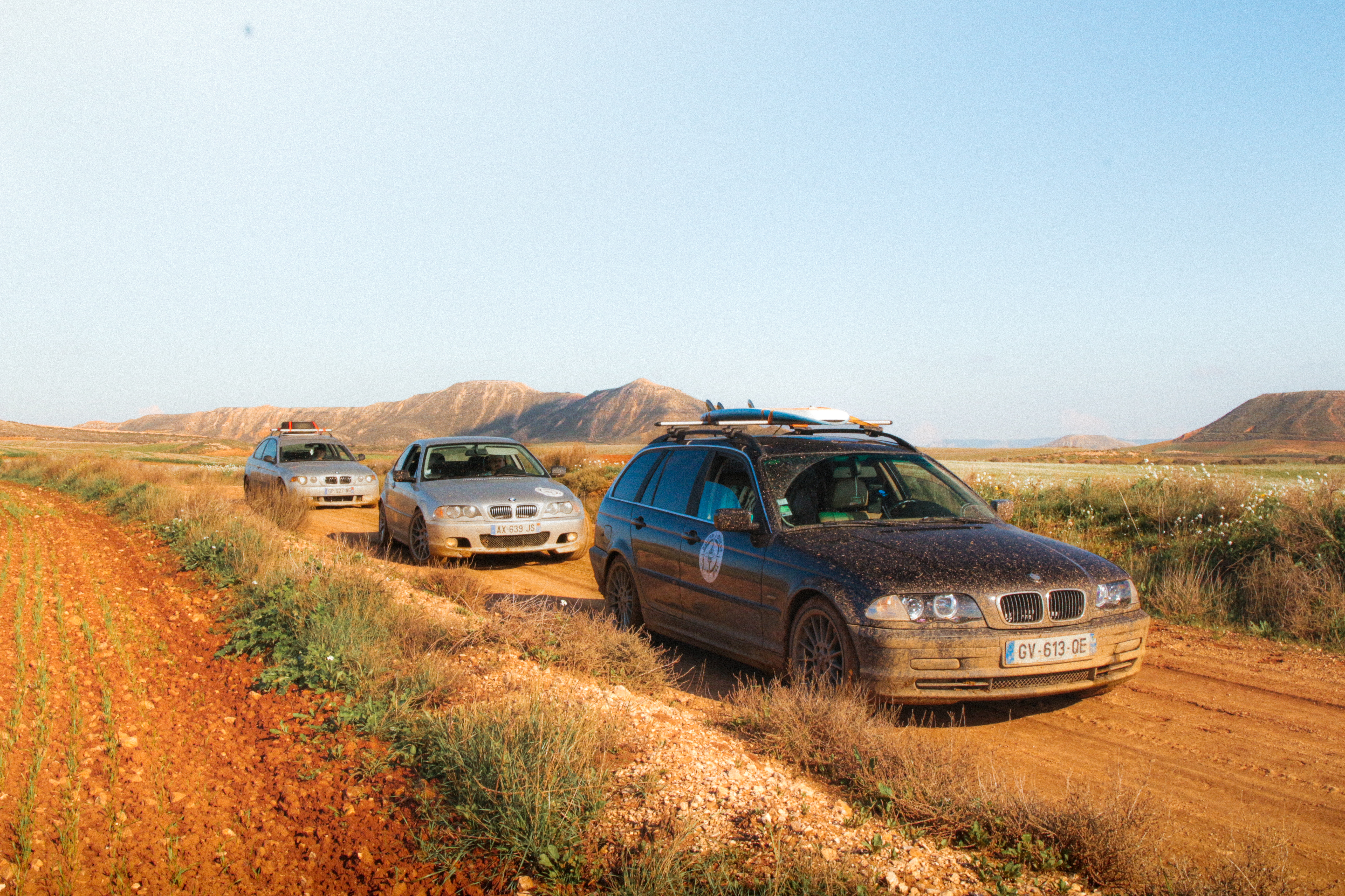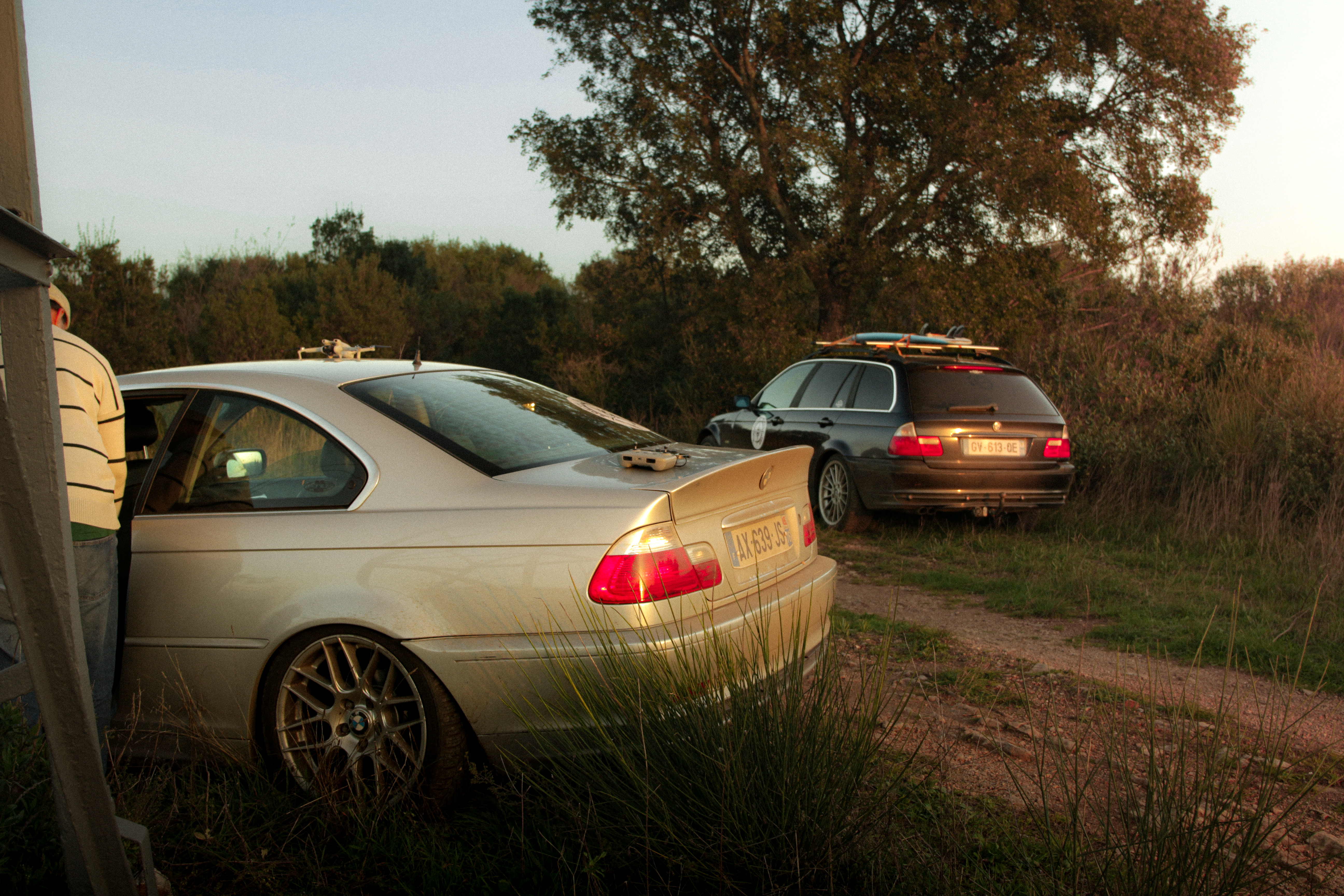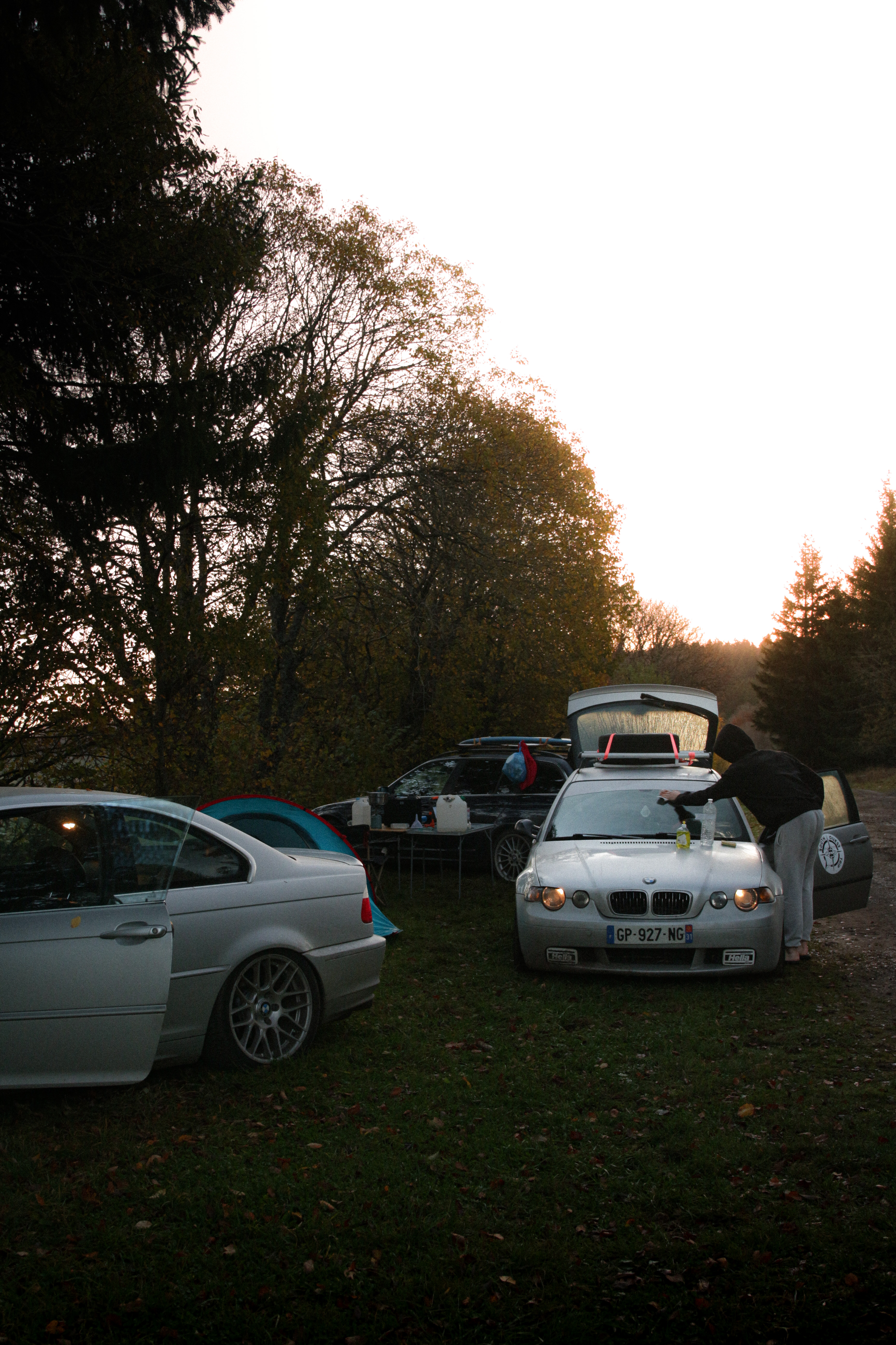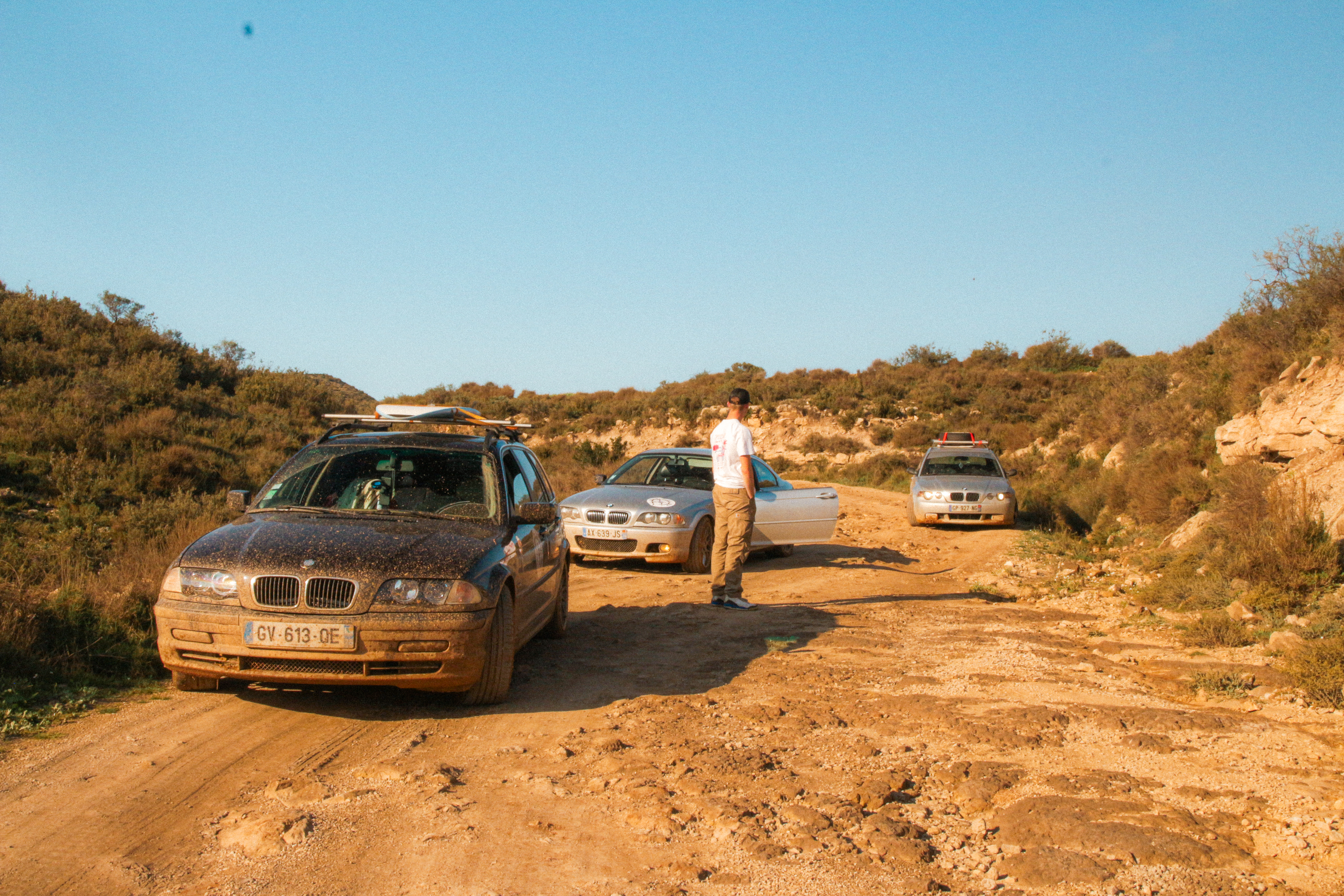 As we cross the small towns of Auvergne, the rumbling exhaust notes of the 323ci, the 325ti’s welded diff scraping the ground, and my surfboard adorning the roof of the 328i Touring break all the necks. It’s all eyes on us. Kids drop their lollipops while pointing at us, grandmothers on terraces wave at us, and hunters stare at us, confused, from the heights of their 4x4s.