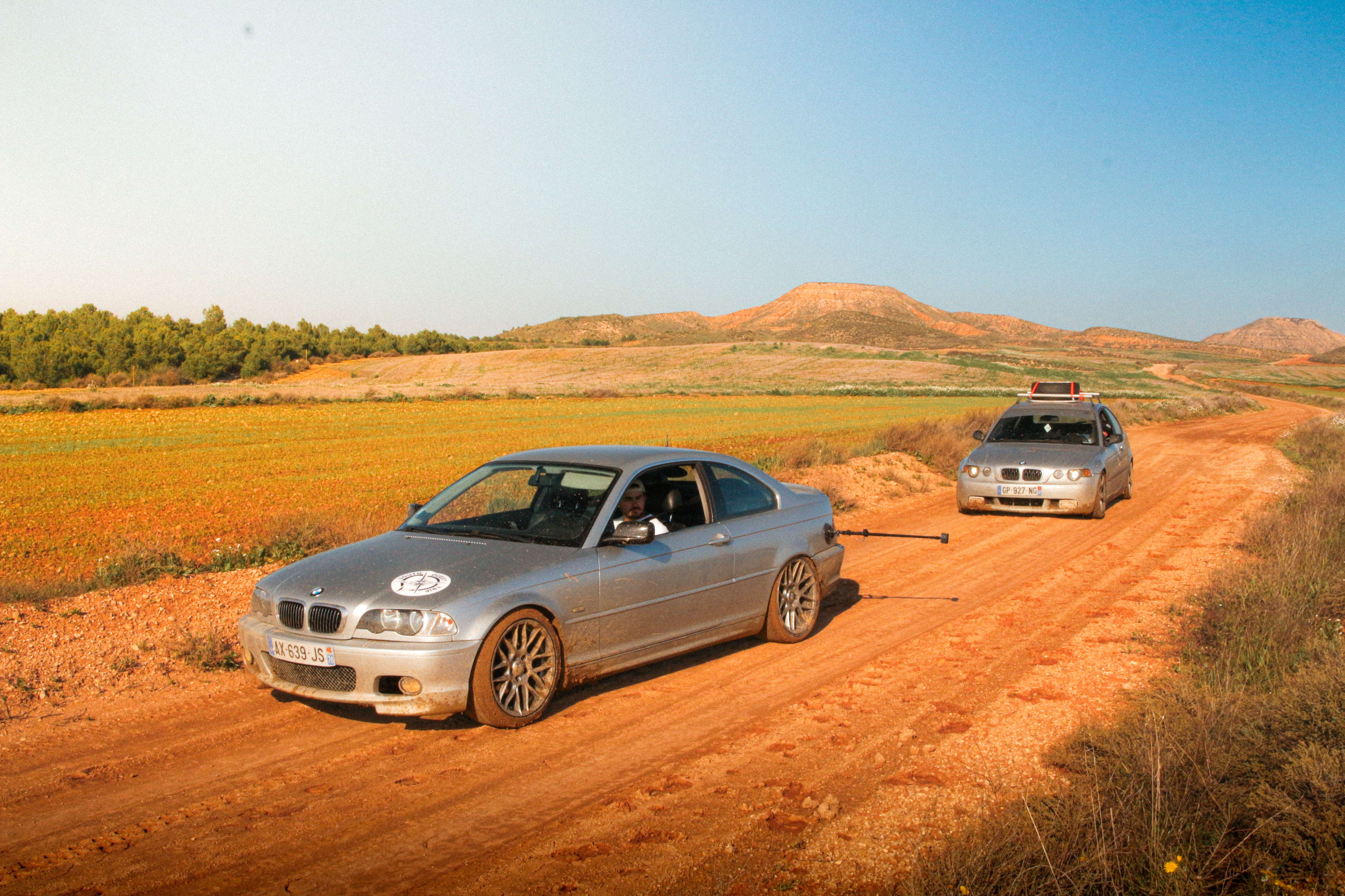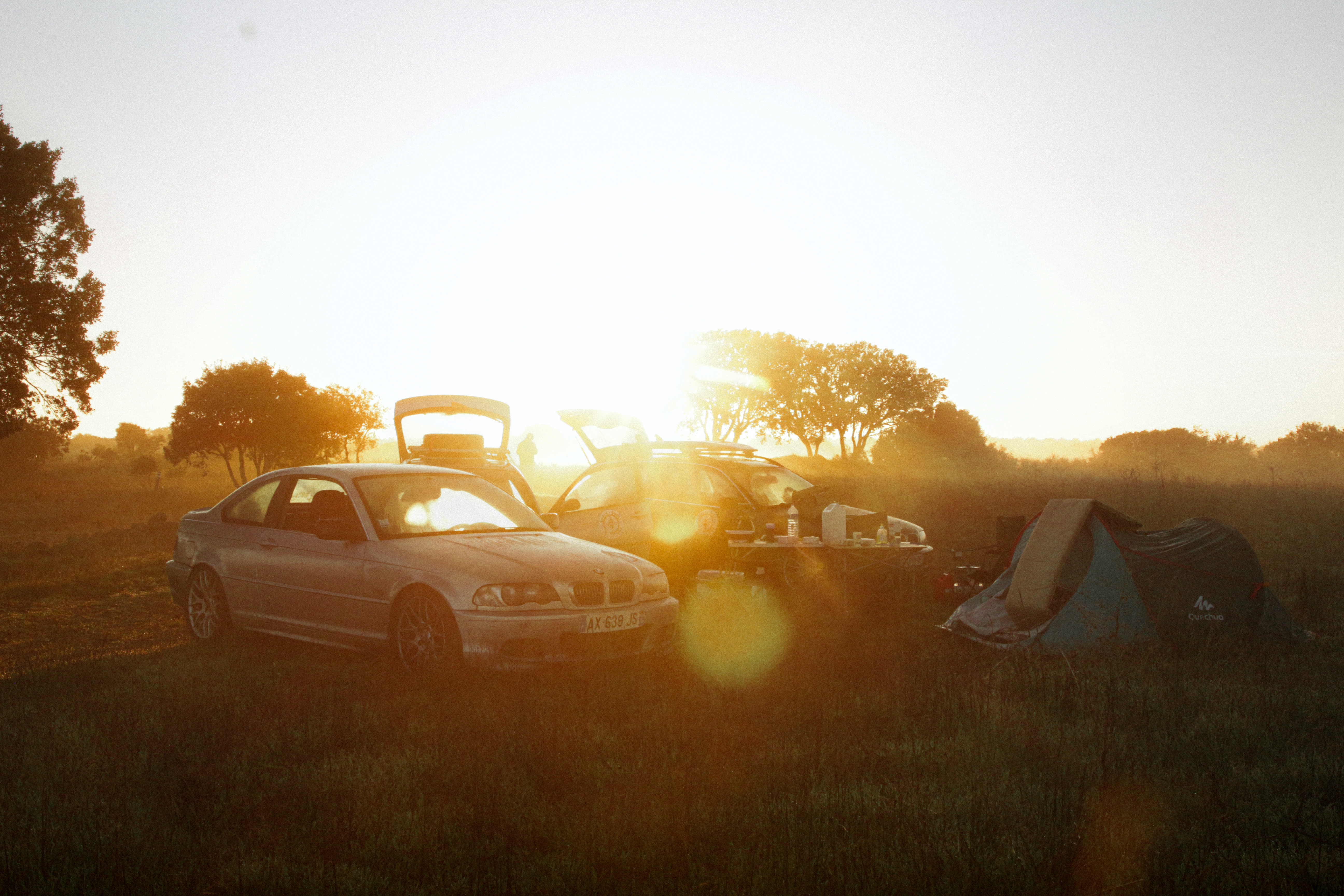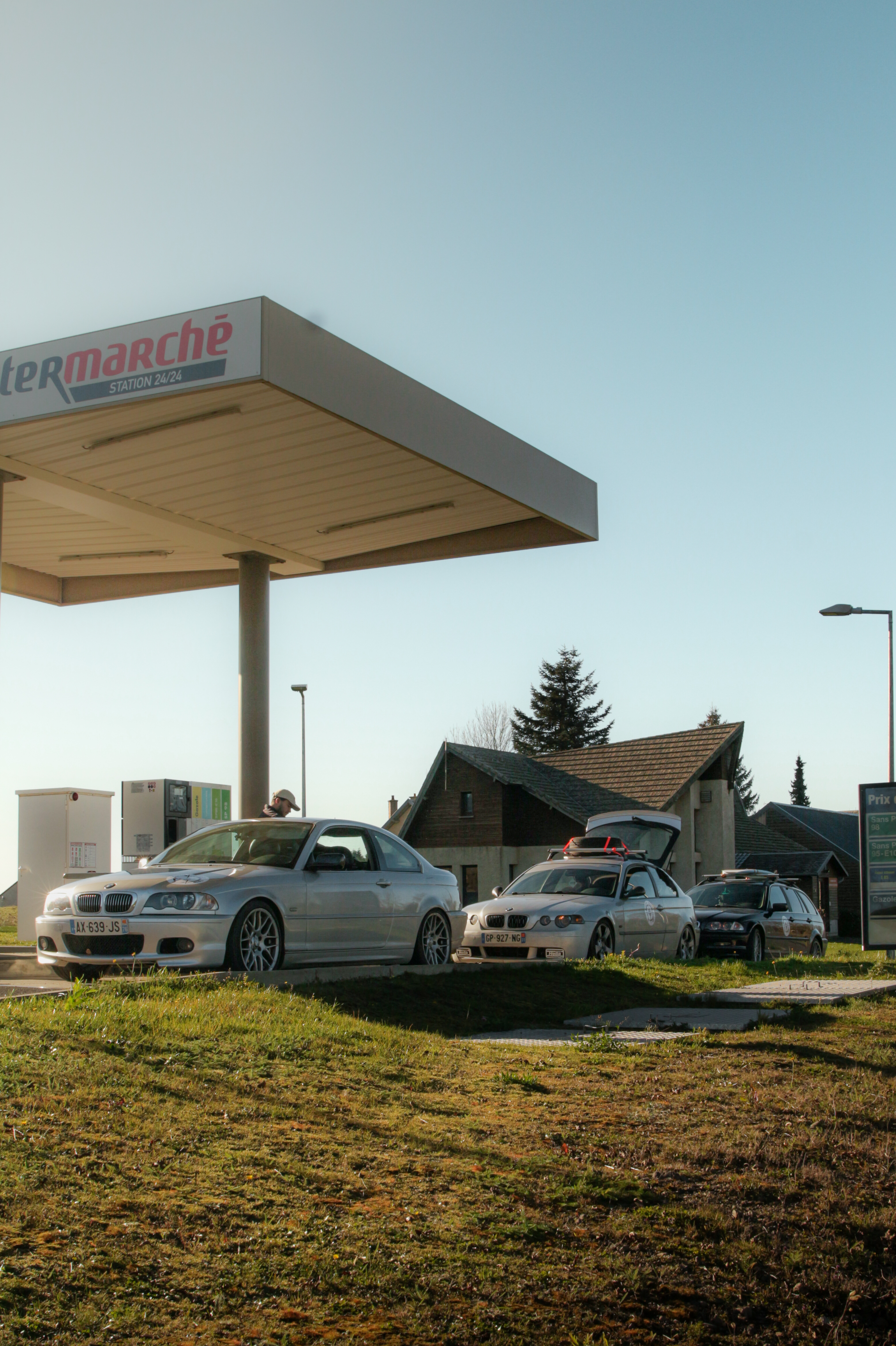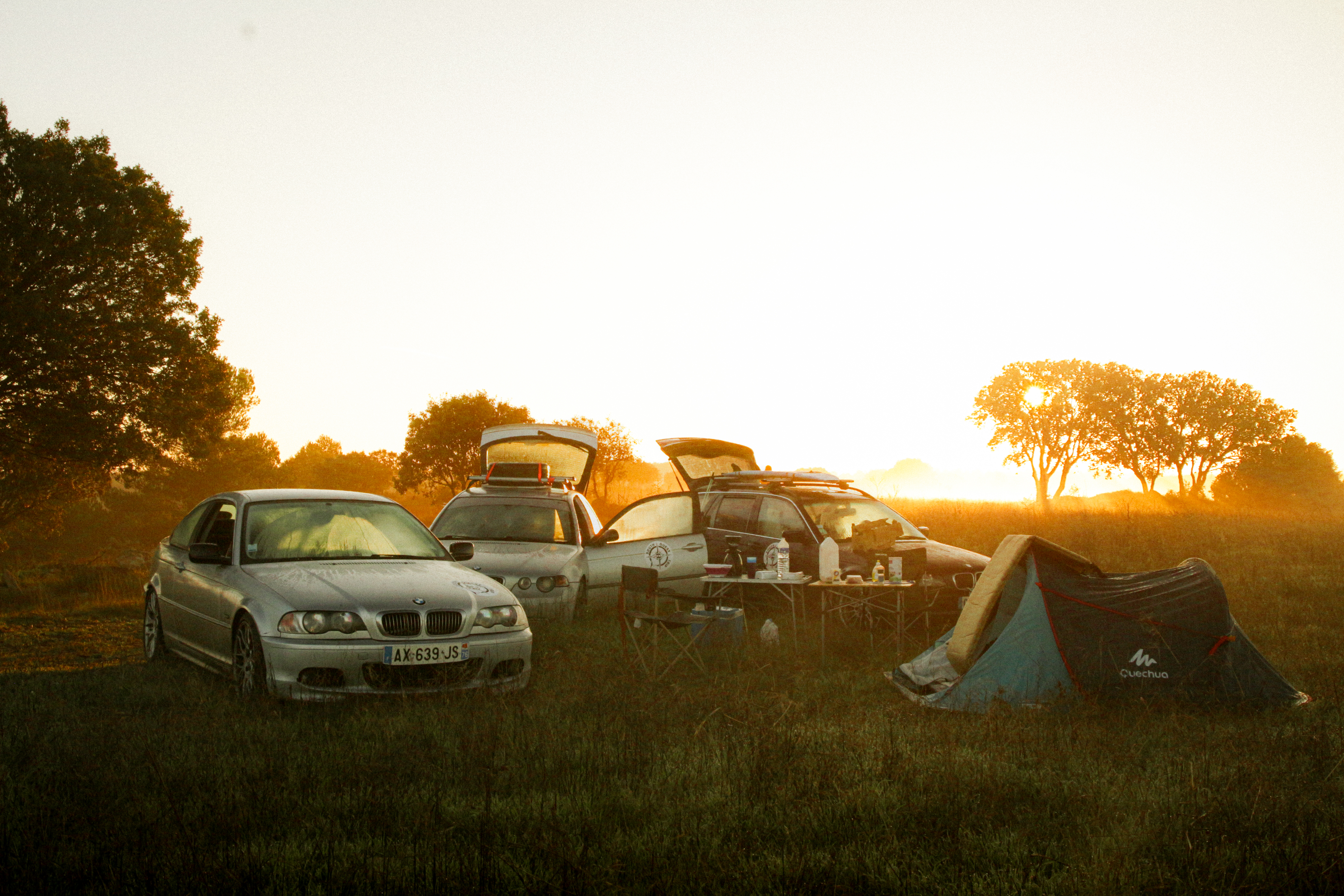 As we cross the small towns of Auvergne, the rumbling exhaust notes of the 323ci, the 325ti’s welded diff scraping the ground, and my surfboard adorning the roof of the 328i Touring break all the necks. It’s all eyes on us. Kids drop their lollipops while pointing at us, grandmothers on terraces wave at us, and hunters stare at us, confused, from the heights of their 4x4s.