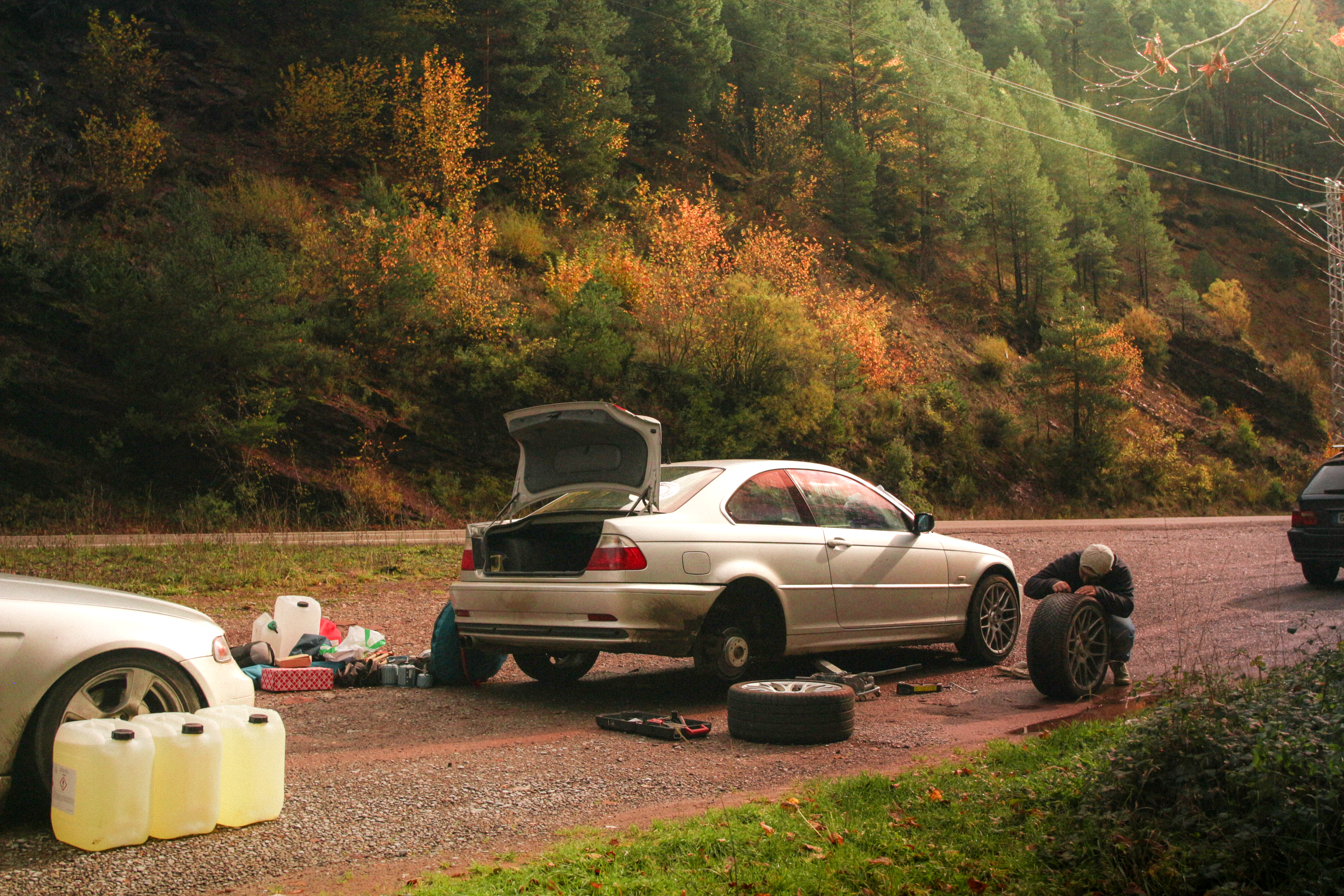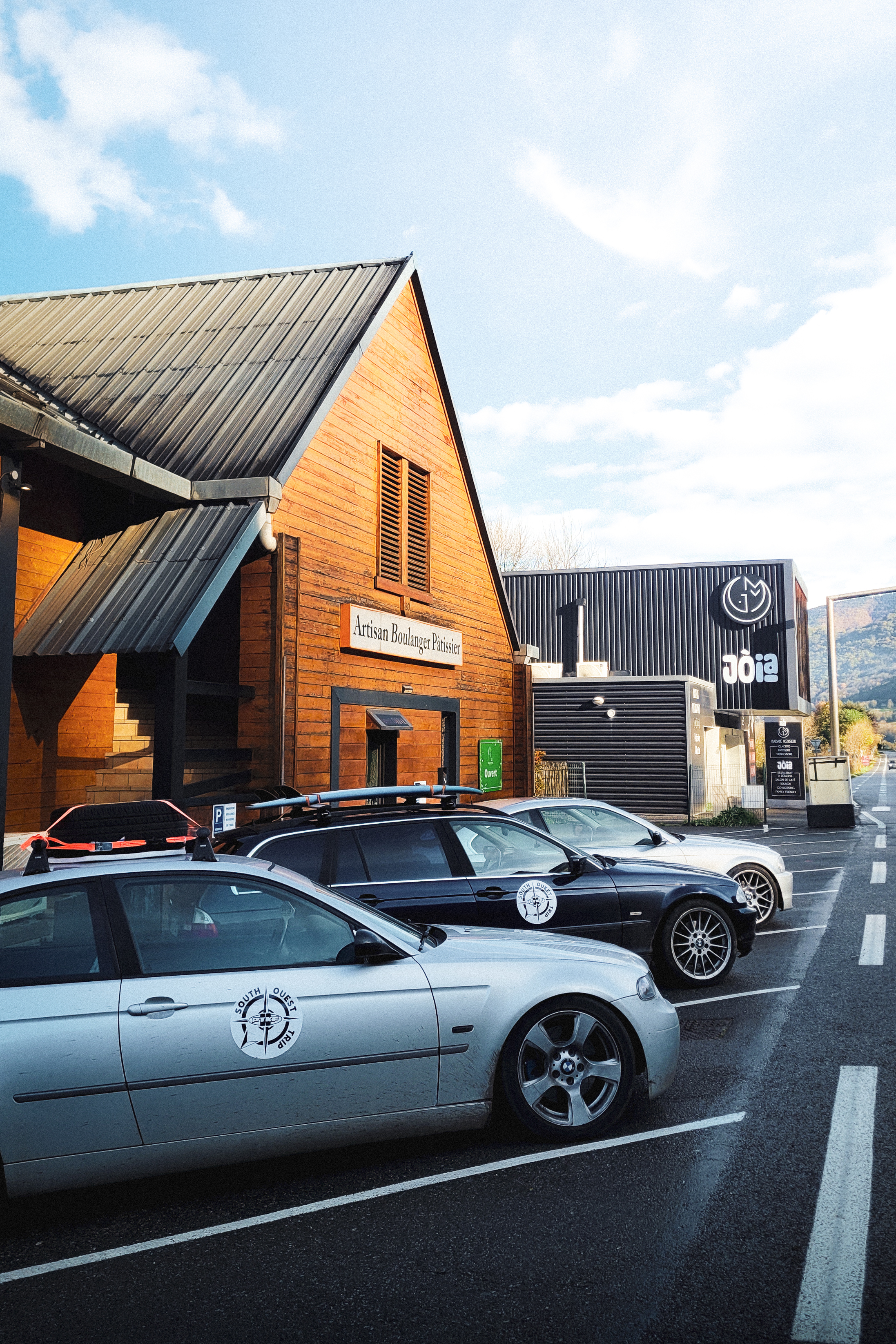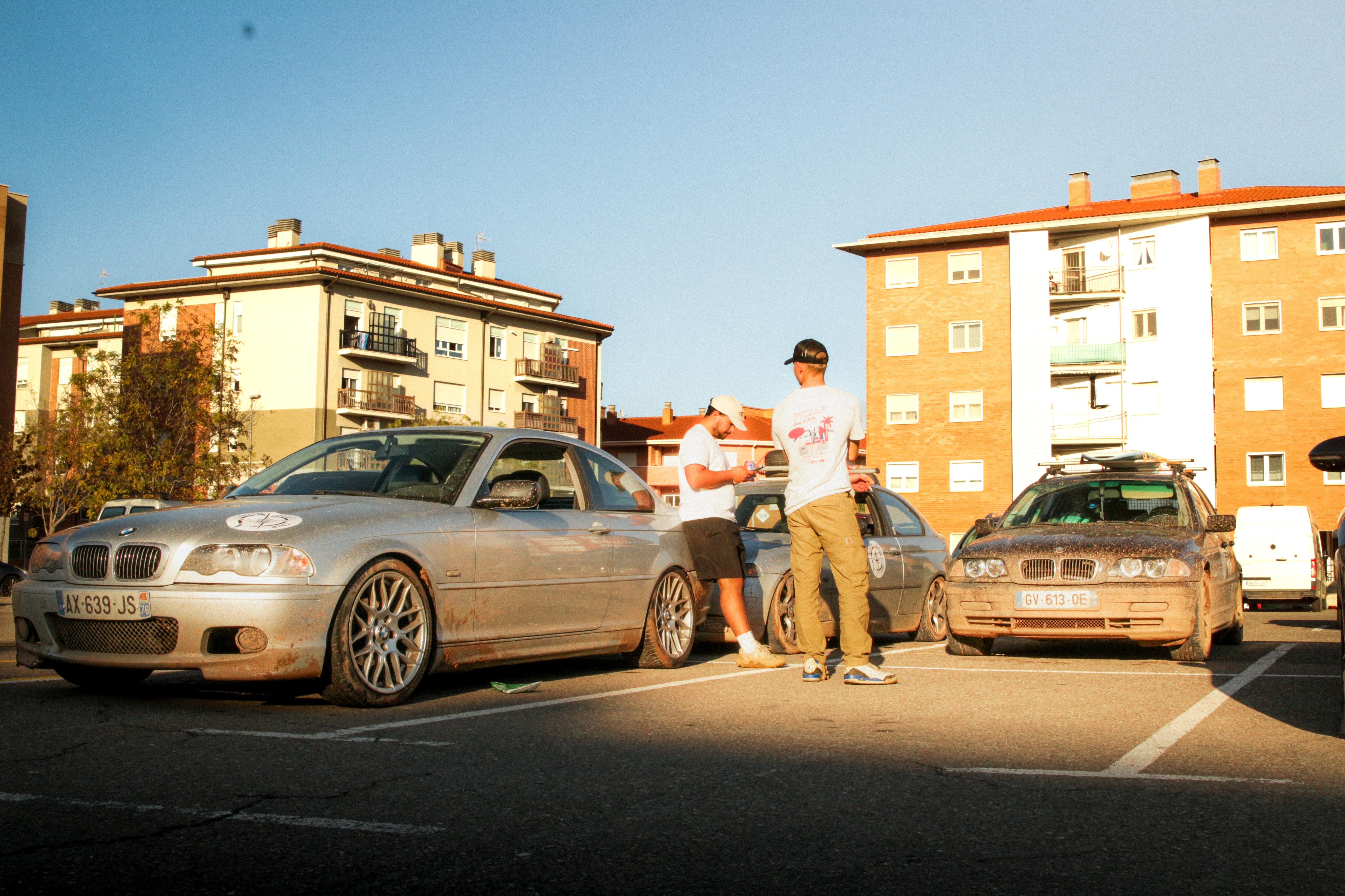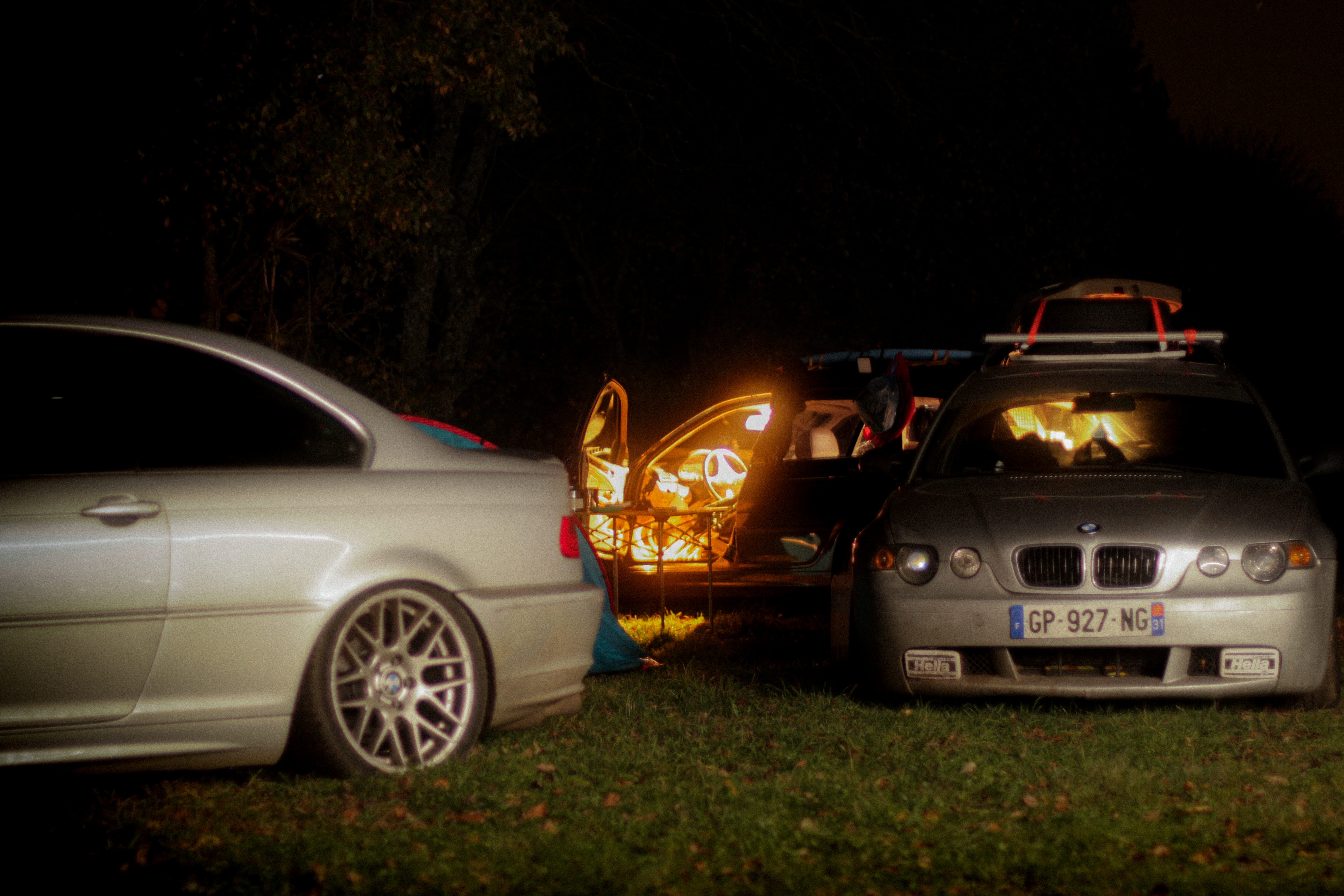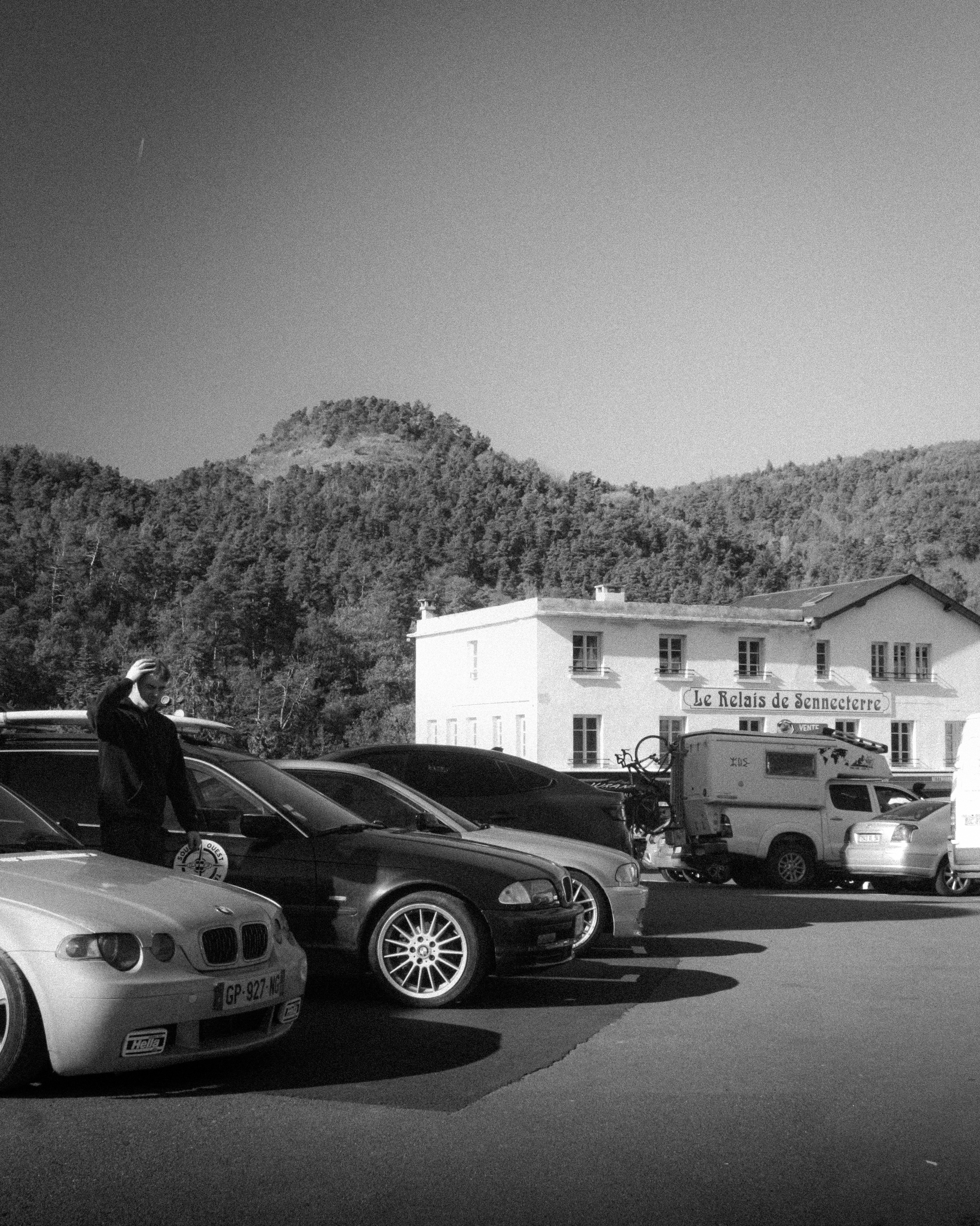 As we cross the small towns of Auvergne, the rumbling exhaust notes of the 323ci, the 325ti’s welded diff scraping the ground, and my surfboard adorning the roof of the 328i Touring break all the necks. It’s all eyes on us. Kids drop their lollipops while pointing at us, grandmothers on terraces wave at us, and hunters stare at us, confused, from the heights of their 4x4s.