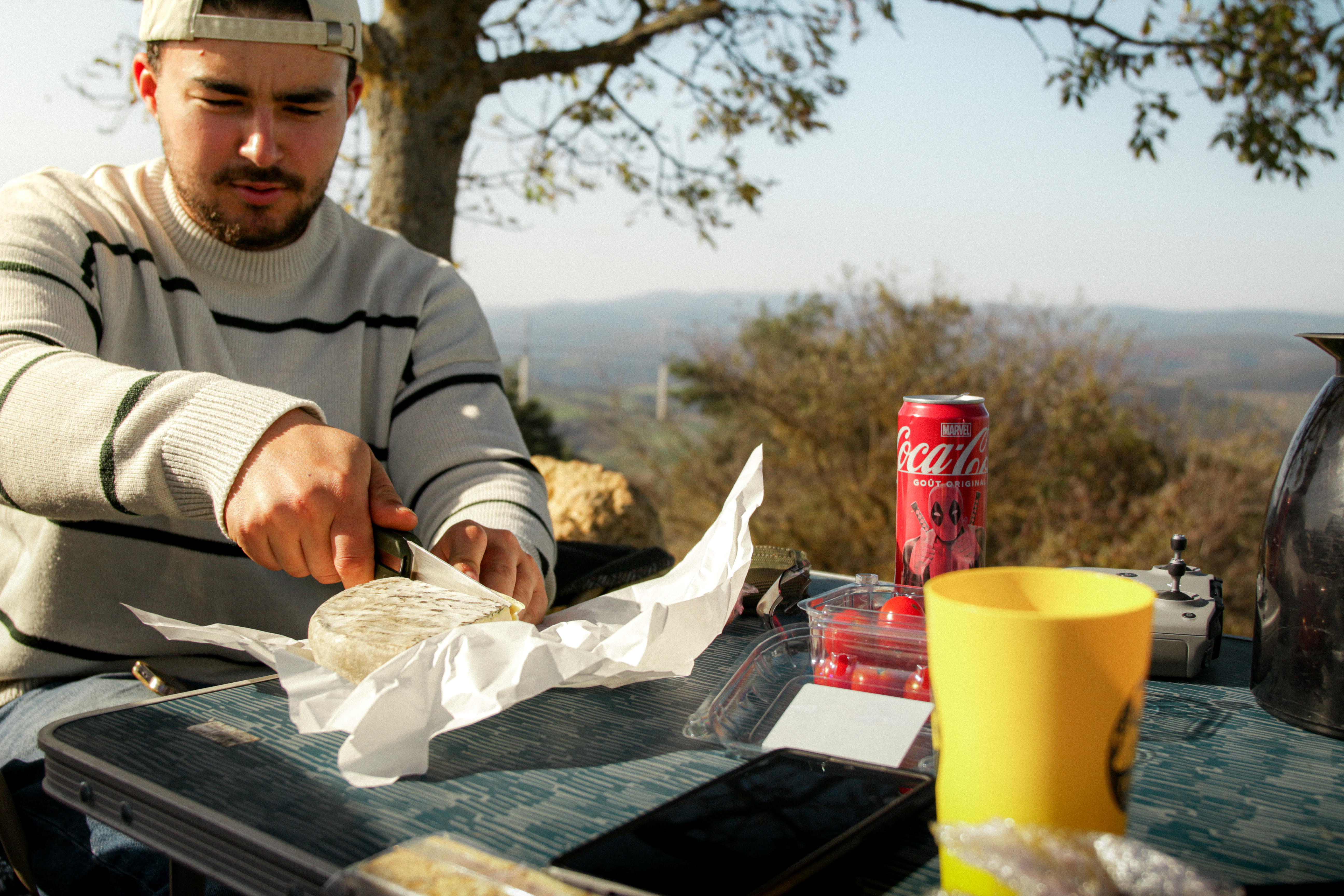 Pour la première fois depuis le départ, on s’accorde enfin une vraie pause. A peine une heure nous sépare du Salagou, l’objectif d’hier, et le soleil brille; on en profite pour s’envoyer une HK bien fraîche et sortir les hamacs. Bercés par une légère brise qui remonte de la vallée, on se laisse même aller à une petite sieste, plus qu’appréciée après cette nuit à 4°C qui nous semble bien loin désormais. Ça y est, nous voilà officiellement dans le Sud.