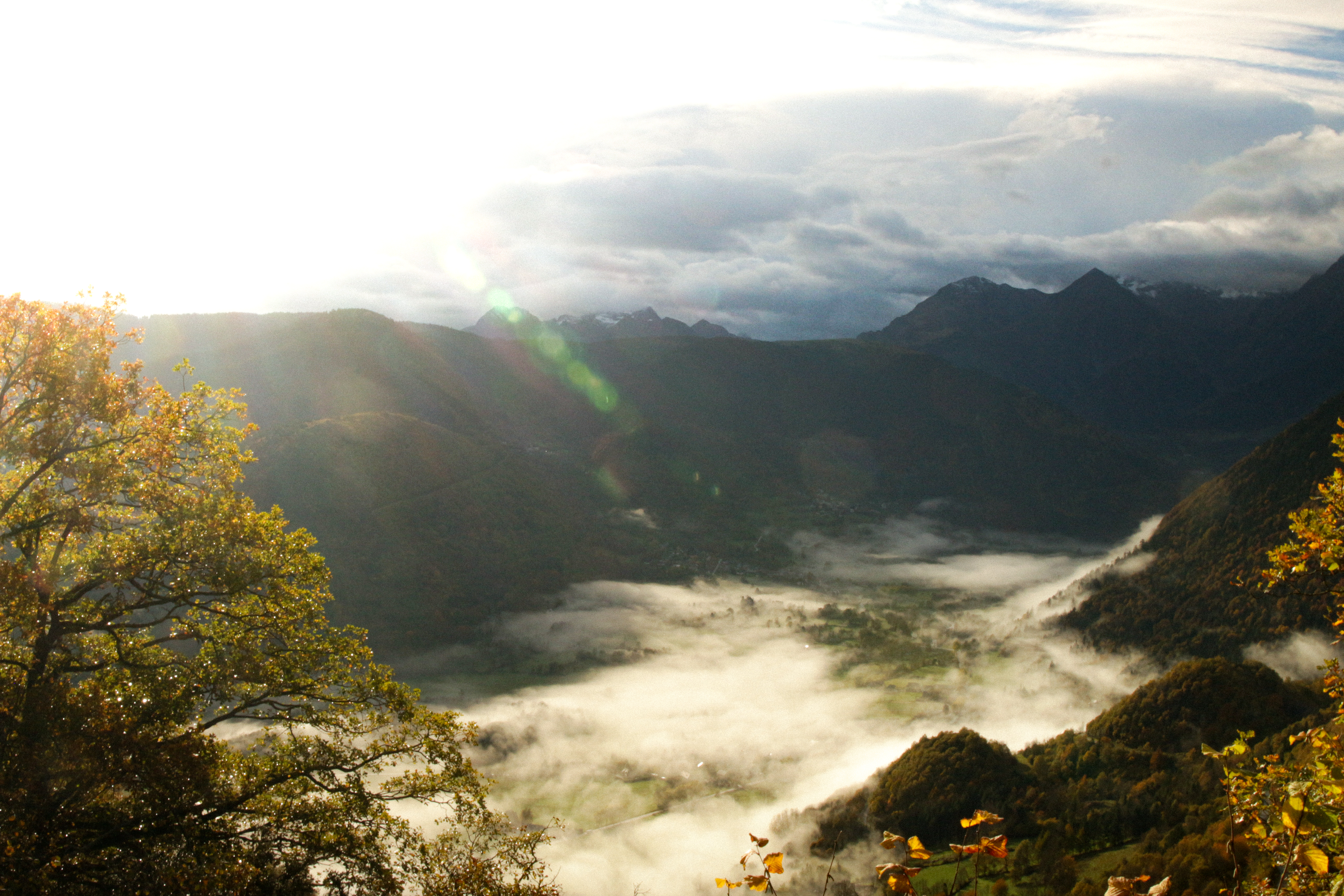 Quand le jour se lève à nouveau sur les Pyrenées, on voit la Vallée d’Aure qui s’éveille sous un drap jaune d’orange. En descendant, Pierre et Momo refont l’appoint d’éthanol, et on prend une dernière pause avant l’Espagne pour le p’tit dej. Croissants 100% pur beurre d’Isigny, ça valait le coup d’aller si loin.