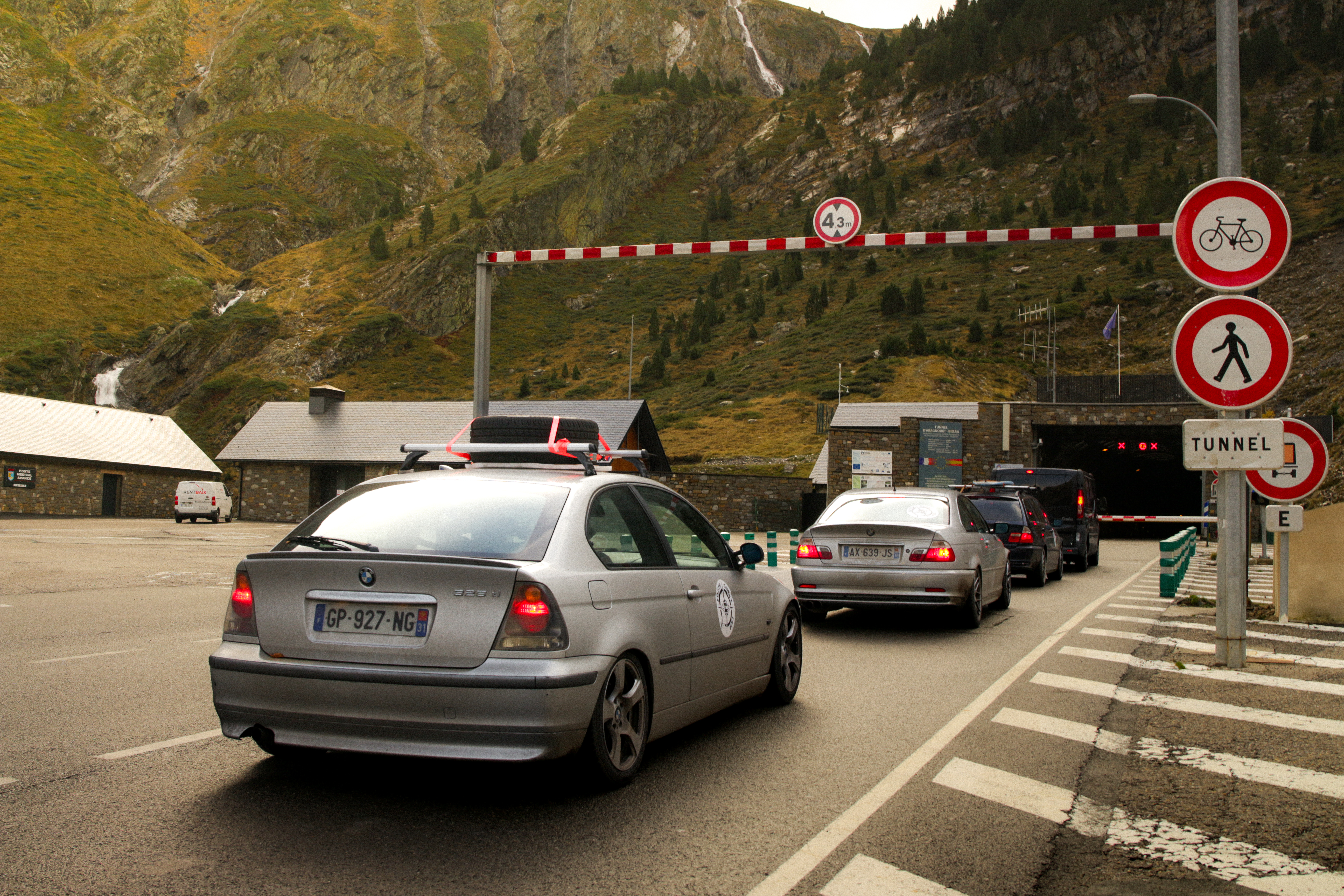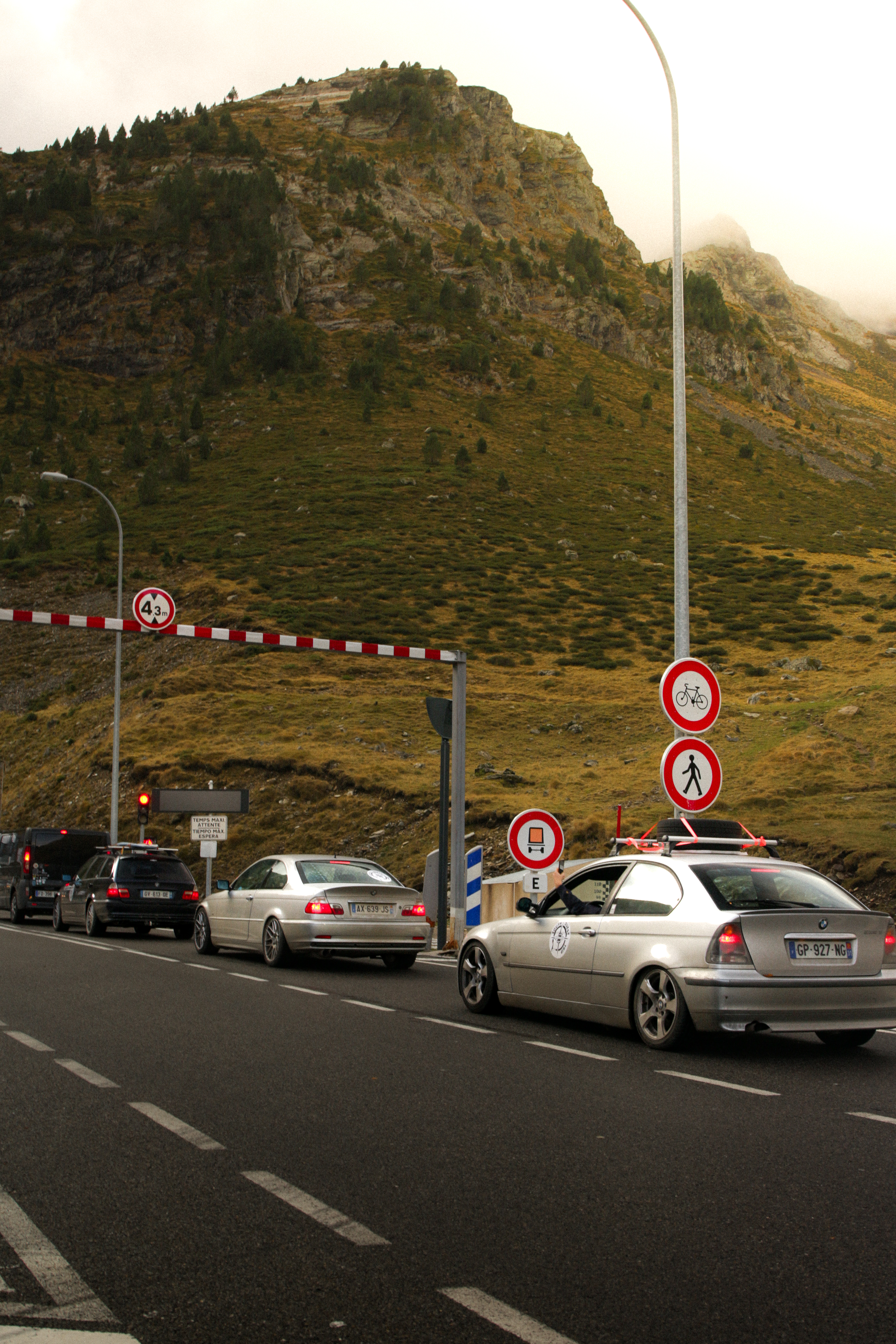 As the day rises again over the Hourquette d’Ancizan, we watch the Vallée d’Aure wake up, draped in yellow and orange. Going down, Pierre and Momo top off with E85, and we take one last break before Spain for breakfast.