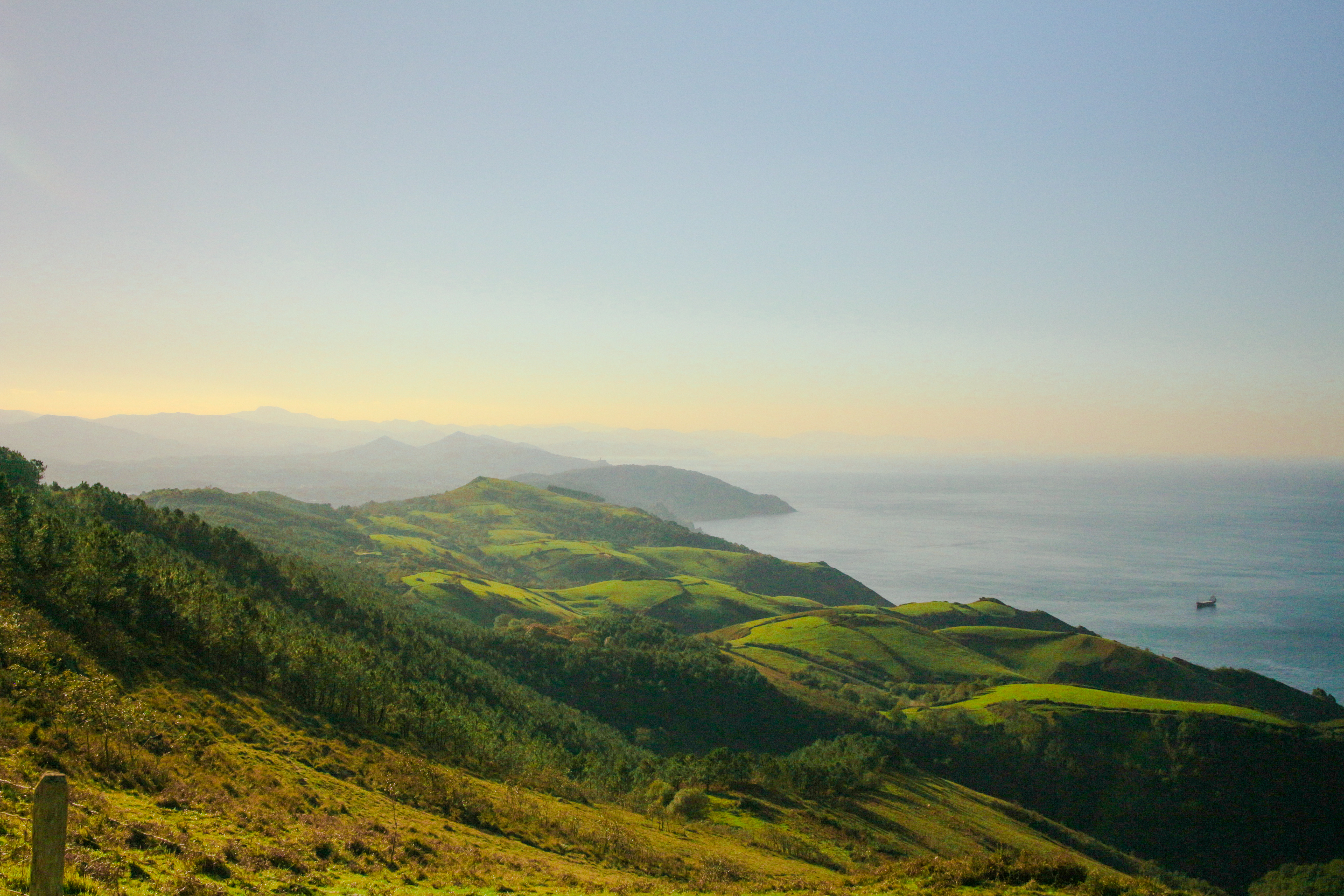 Le Pays-Basque a encore beaucoup à offrir et les gars sont larges niveau éthanol, alors on remet du rythme sur les routes de fond de vallée qui nous mènent à San Sebastian. Là bas on s’envoie quelques tapas avant de grimper sur le Jaizkibel pour prendre un ptikaf avec vue sur le Golfe. Détour rapide par Irun pour faire le plein de clopes pour les copains restés au bercail, et on repart à l’assaut de la Corniche Basque. Ça sent la fin alors on profite de chaque virage comme le dernier. On se prend le soleil plein fer comme Ari à Pikes Peak mais putain que c’est beau.