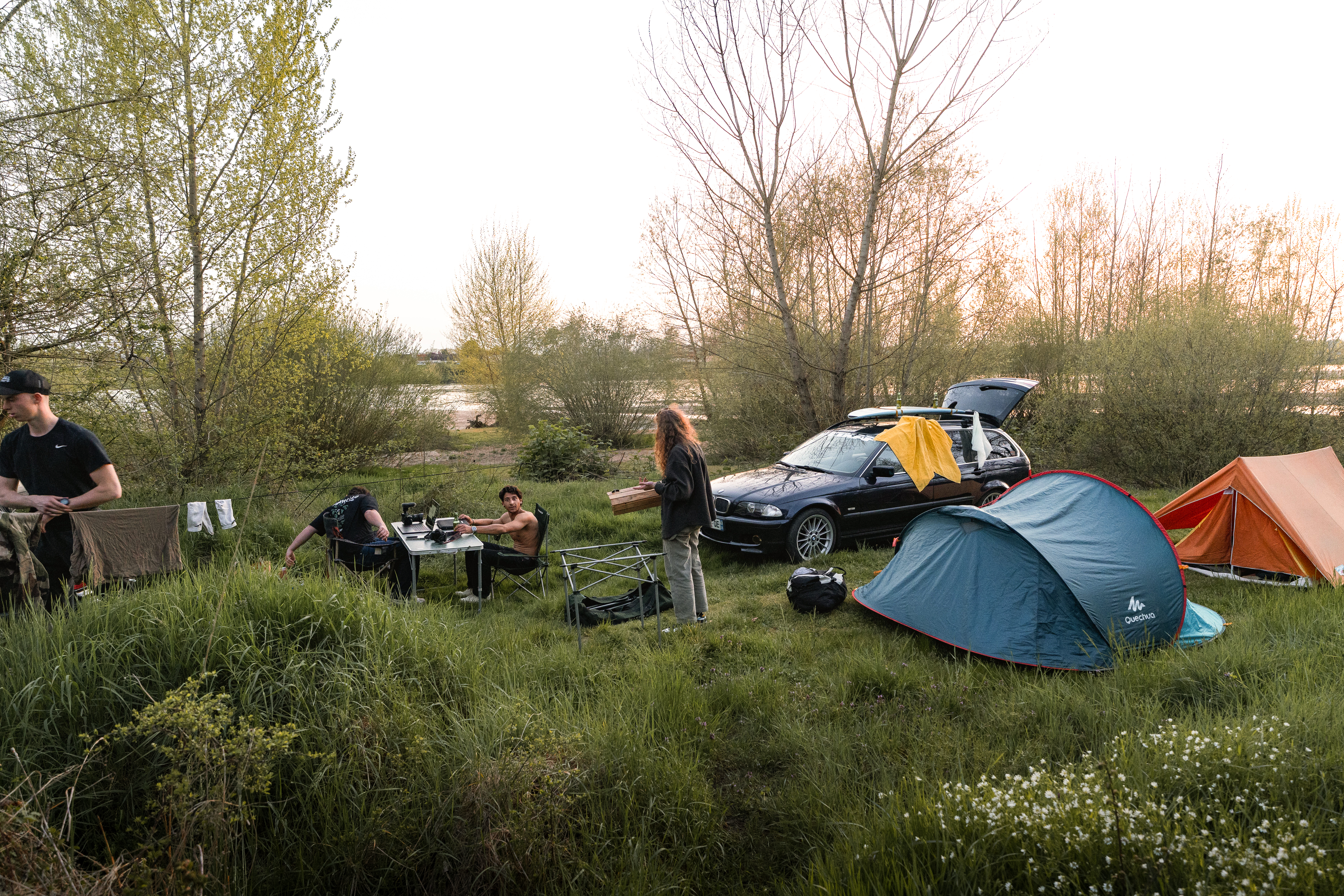 We don’t have any plans for the evening yet, so after catching a few passes, we decide to head down to Nevers, where the ISAT crew is prepping a BBQ on the Bec d’Allier beach. We’ll pitch the tent nearby after a quick detour to a car wash on our way back to civilization.