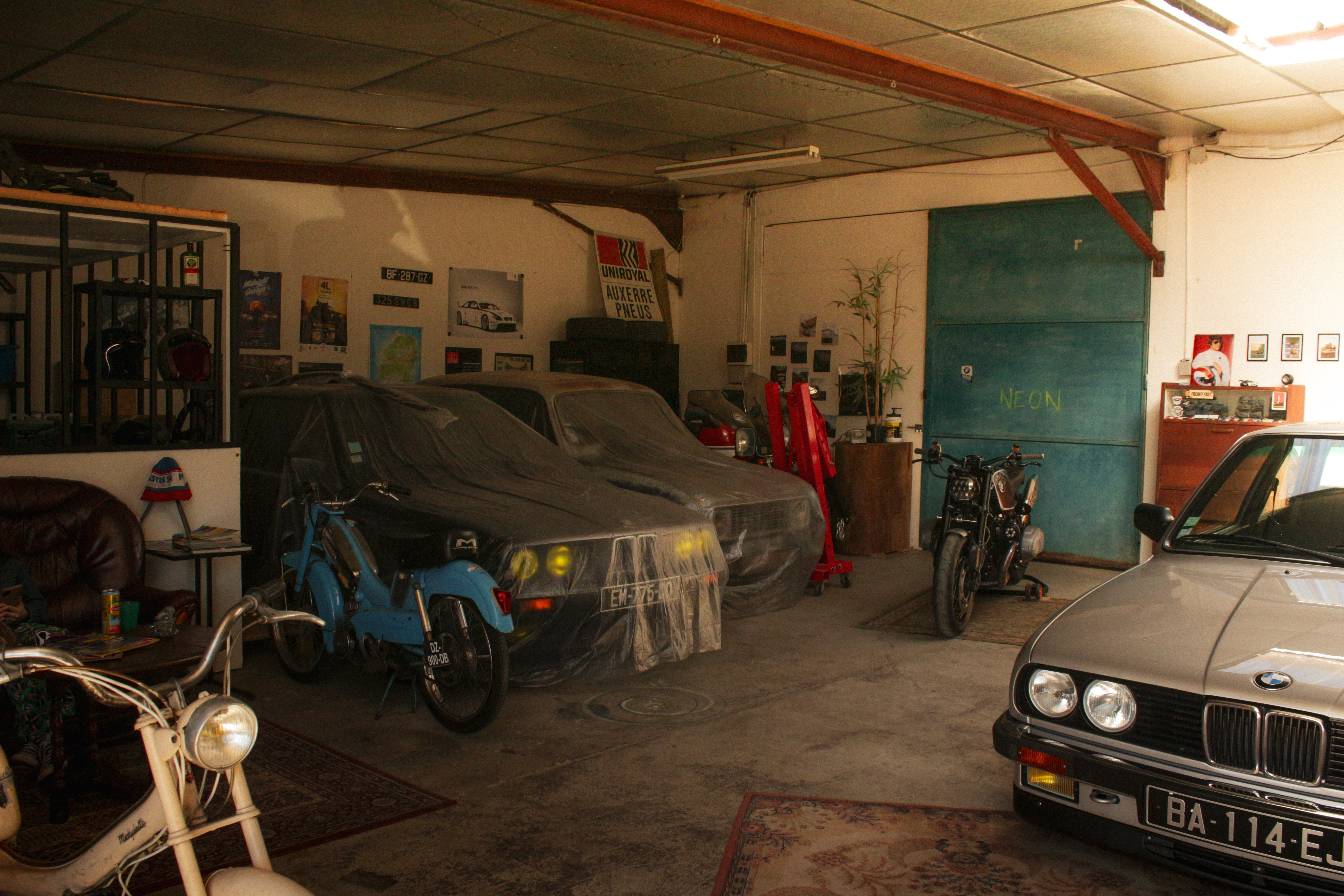 Dans l’atelier d’Armand, ça sent bon le café chaud et la passion de la marque à l’hélice. La moitié des E30 de Bourgogne ont du y séjourner, se délestant au passage d’un pommeau de vitesse, d’un enjoliveur ou d’un bout de carrosserie pour en orner ses murs. Un lieu qui aurait pu nourrir les rêves du petit moi qui collectionnait les Hot Wheels et construisait des garages en Kapla sur la moquette.