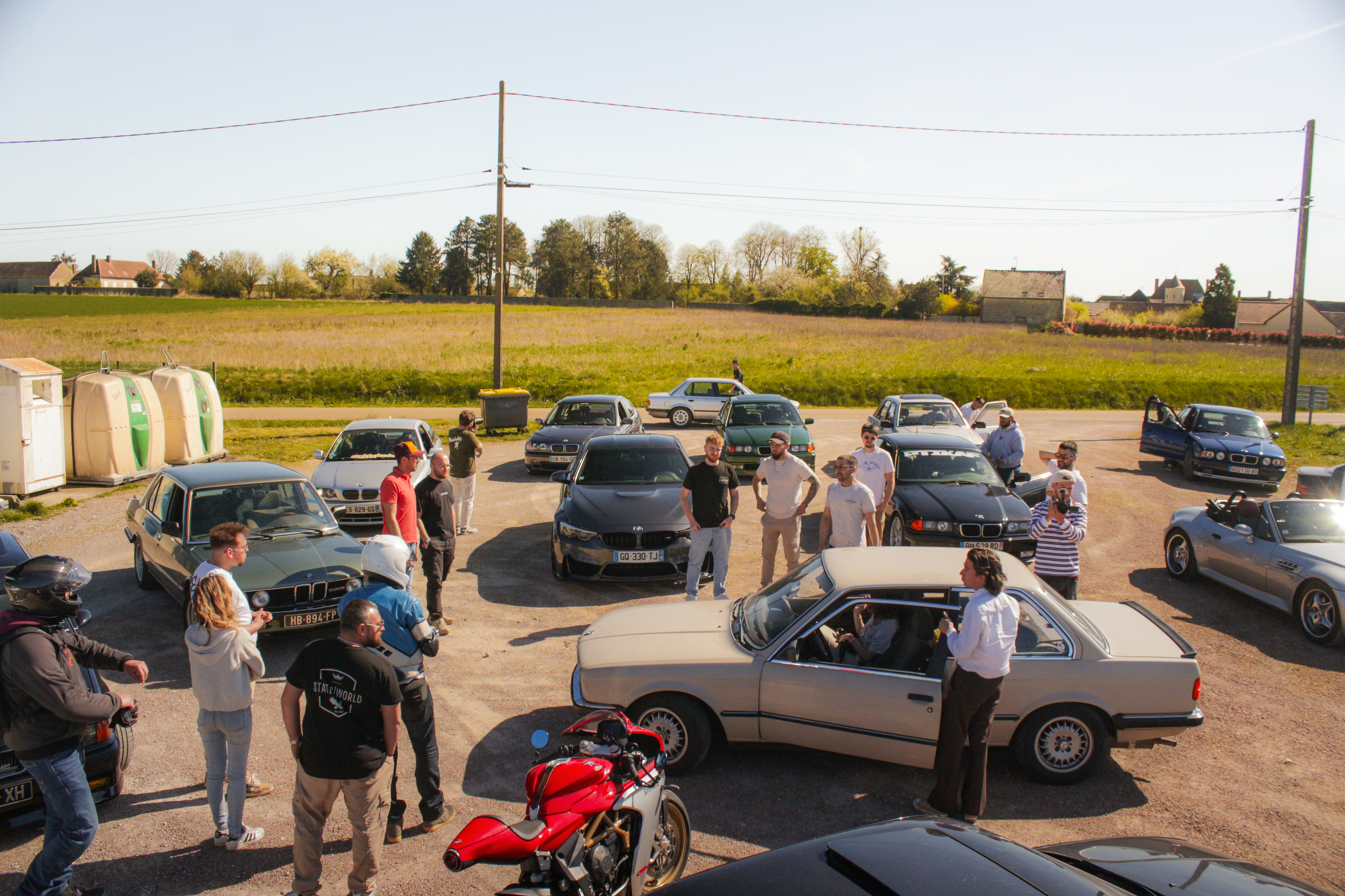 After some hot dogs, beers, and a whole lot of laughs with the boys, the alarm goes off at 7 AM. A cold shower in the Loire, a quick breakfast on the road, and we meet up with Nico, Léo, Kérian, and their Bimmers at a rest area on the A77. The Touring leads the way toward Villeneuve-sur-Yonne, ready to kick off the season the Hofmeisters way.